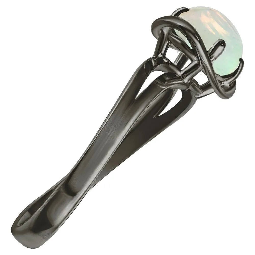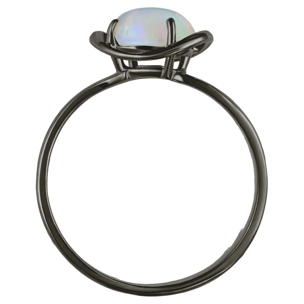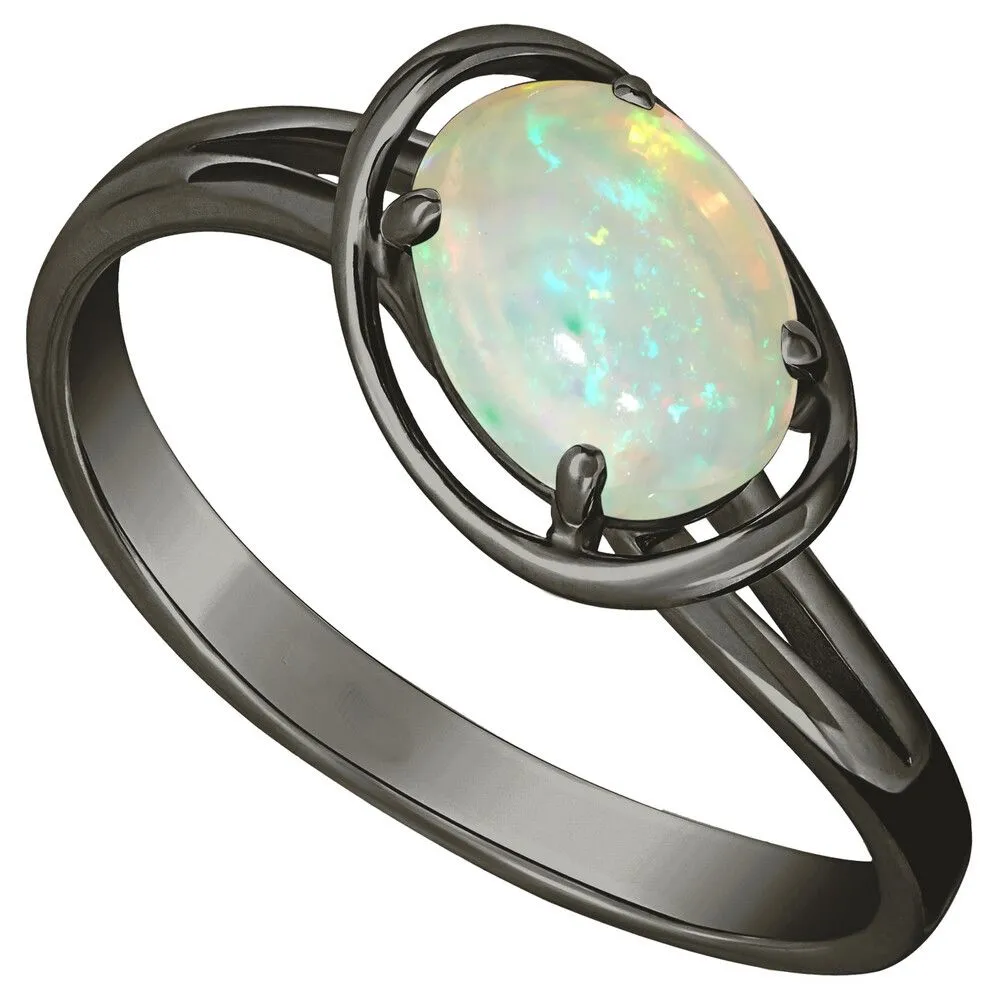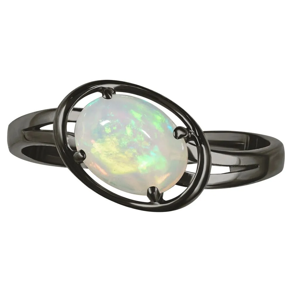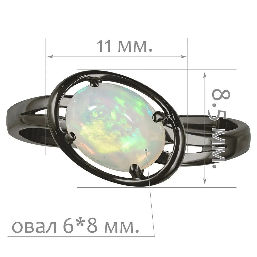 Серебряное кольцо с натуральным опалом (каб.) - коллекция Фрейя / Черный Родий. Средний вес украшения с камнями 1.79 гр. Месторождение: Опал (Эфиопия). Ювелирные вставки: Опал (Натуральный) овал 6*8 мм., средний вес: 0.75 карат. Все изделия собственного производства и имеют гарантию 12 месяцев, к каждому изделию прилагается паспорт. Арт. 8917BR