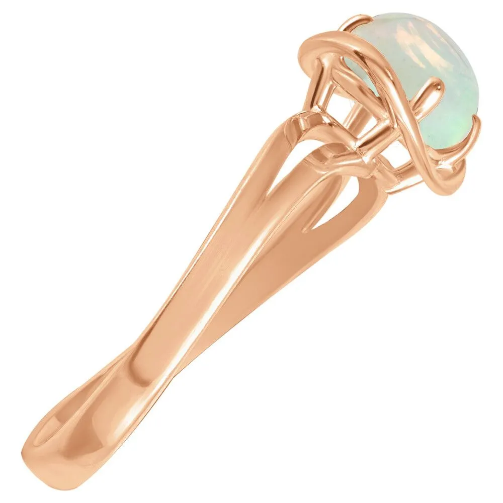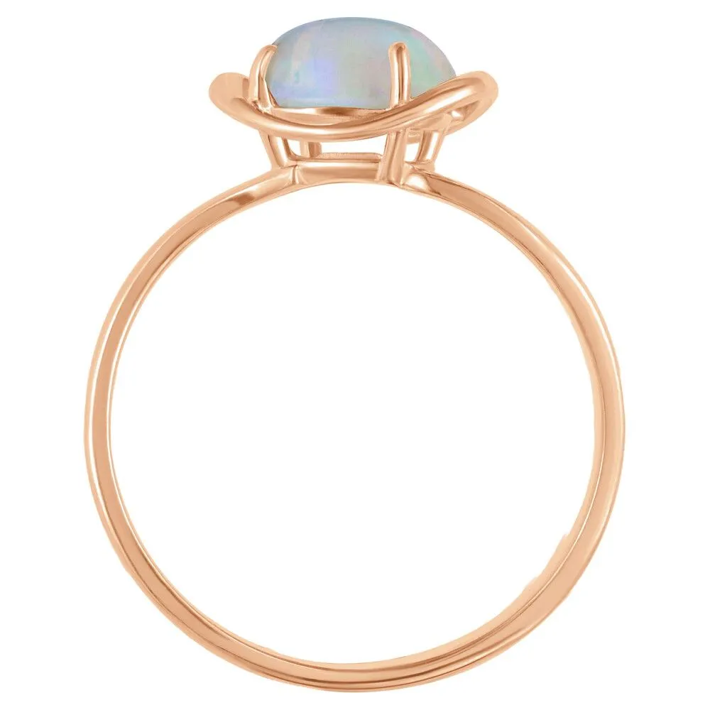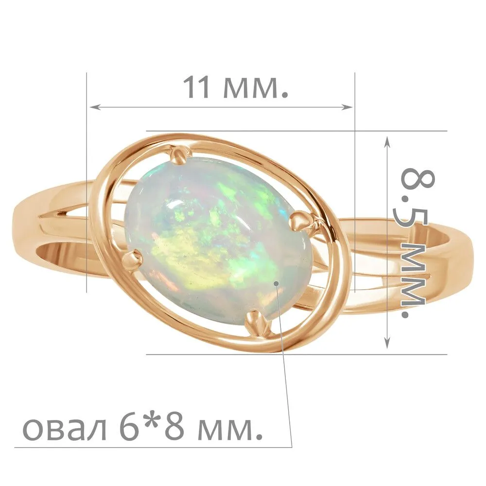 Серебряное кольцо с натуральным опалом (каб.) - коллекция Фрейя / Розовое Золото. Средний вес украшения с камнями 1.79 гр. Месторождение: Опал (Эфиопия). Ювелирные вставки: Опал (Натуральный) овал 6*8 мм., средний вес: 0.75 карат. Все изделия собственного производства и имеют гарантию 12 месяцев, к каждому изделию прилагается паспорт. Арт. 8917PG