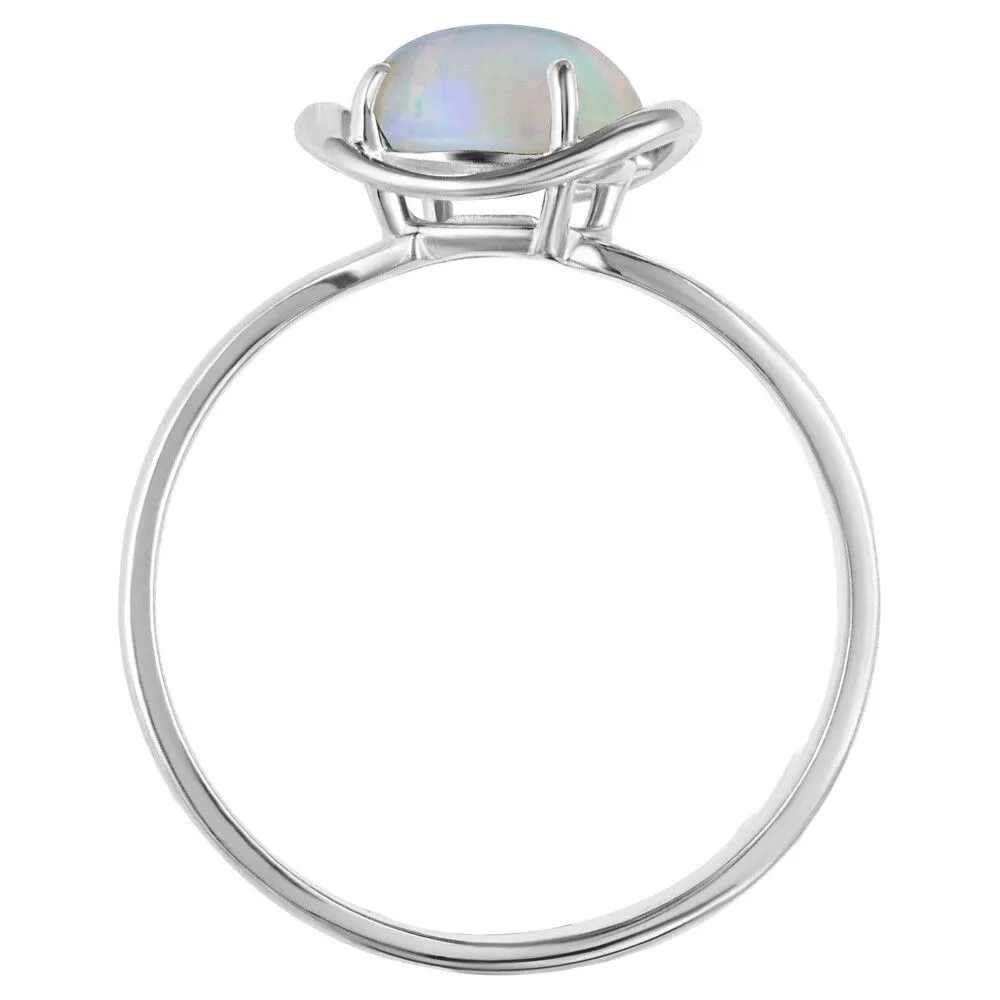 Серебряное кольцо с натуральным опалом (каб.) - коллекция Фрейя / Белый Родий. Средний вес украшения с камнями 1.79 гр. Месторождение: Опал (Эфиопия). Ювелирные вставки: Опал (Натуральный) овал 6*8 мм., средний вес: 0.75 карат. Все изделия собственного производства и имеют гарантию 12 месяцев, к каждому изделию прилагается паспорт. Арт. 8917WR