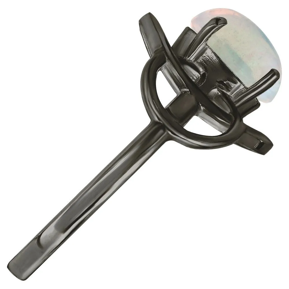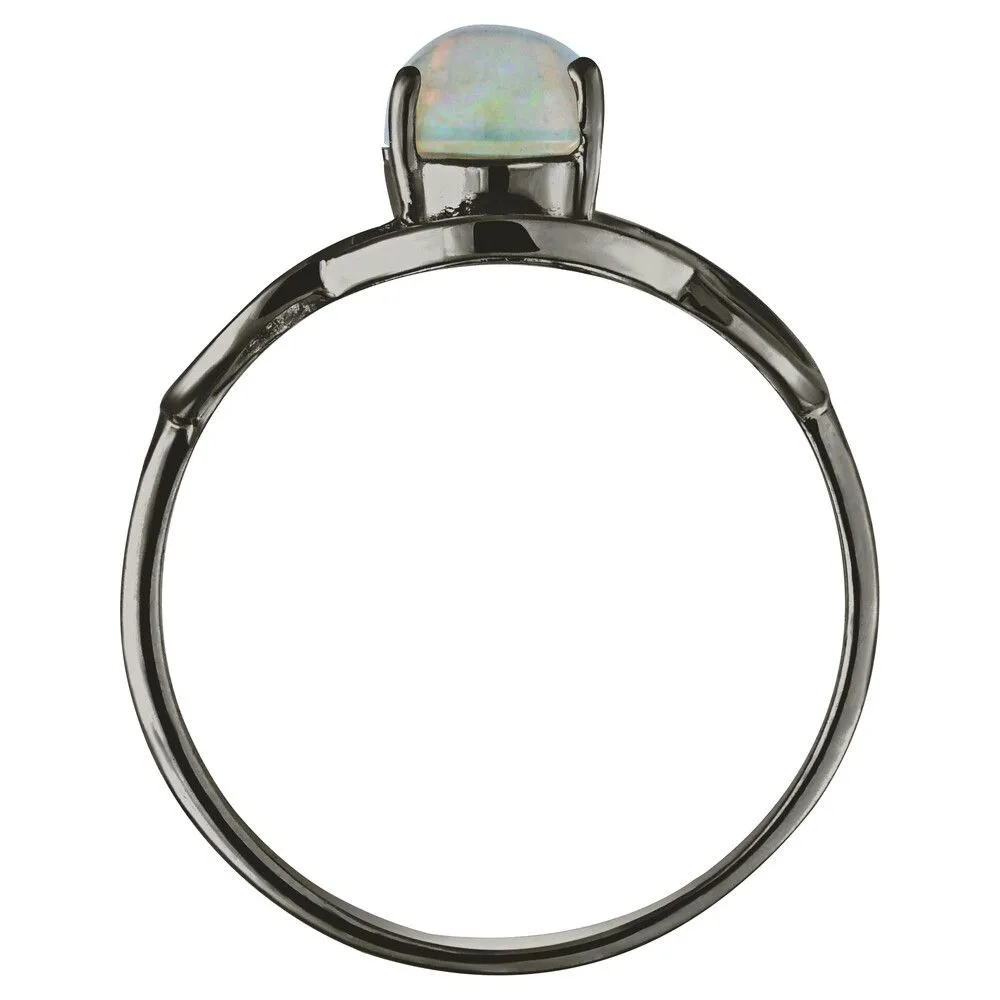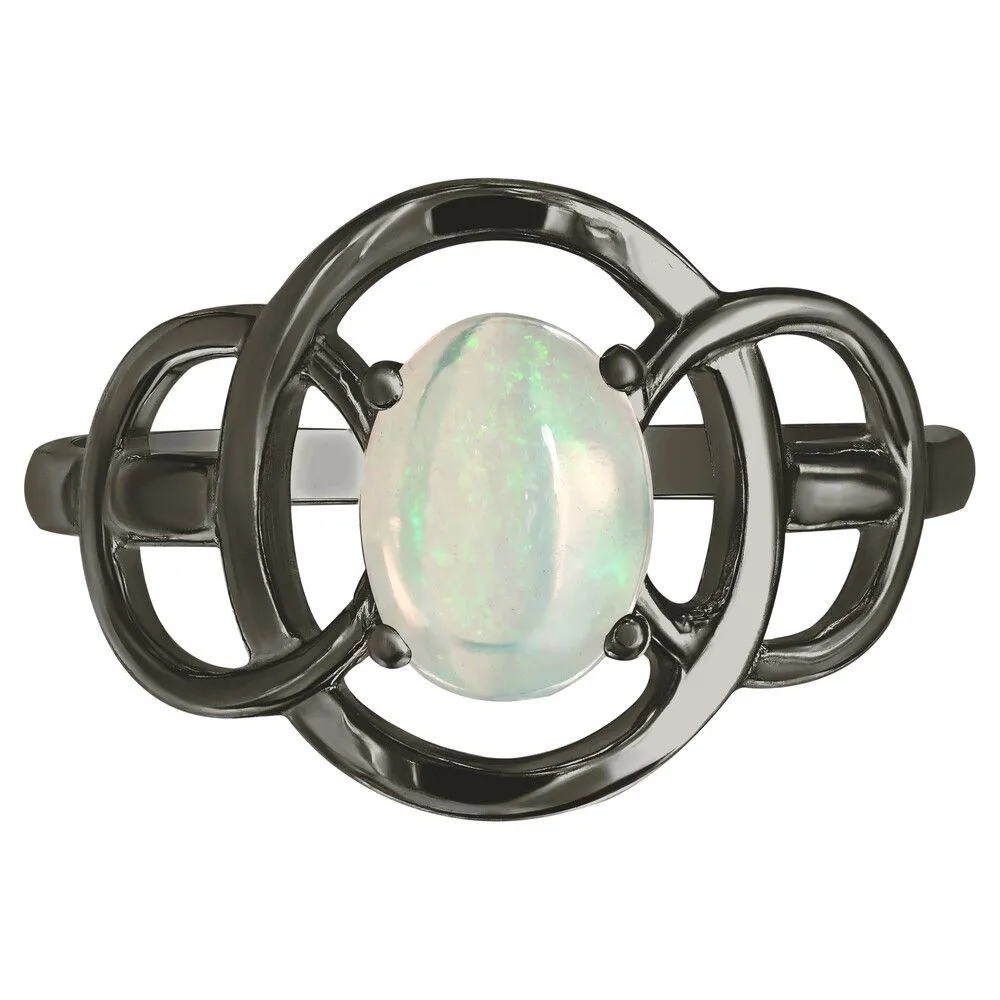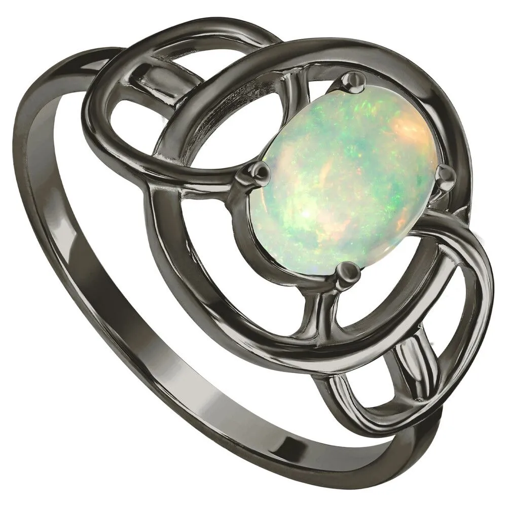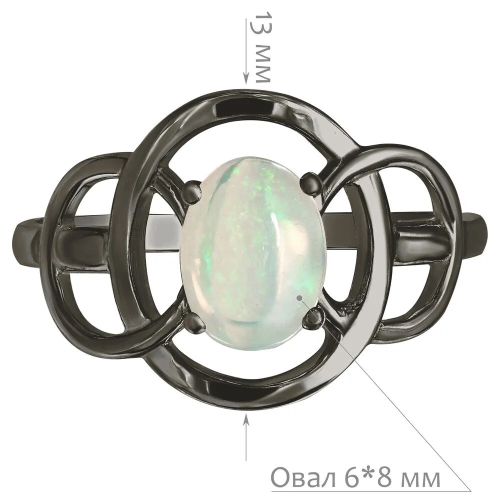 Серебряное кольцо с натуральным опалом (каб.) - коллекция Юнона / Черный Родий. Средний вес украшения с камнями 2.1 гр. Месторождение: Опал (Эфиопия). Ювелирные вставки: Опал (Натуральный) овал 6*8 мм., средний вес: 0.75 карат. Все изделия собственного производства и имеют гарантию 12 месяцев, к каждому изделию прилагается паспорт. Арт. 8920BR