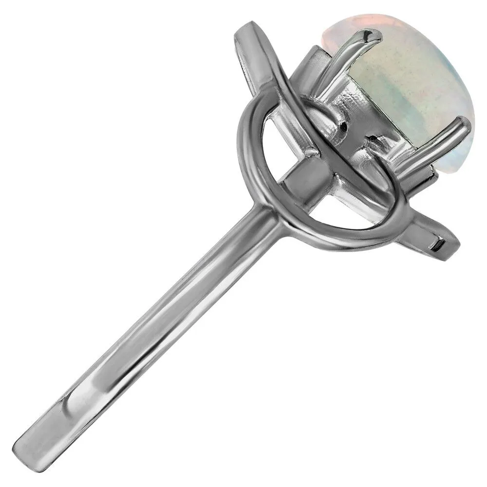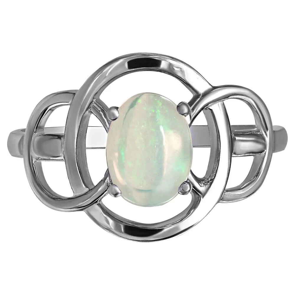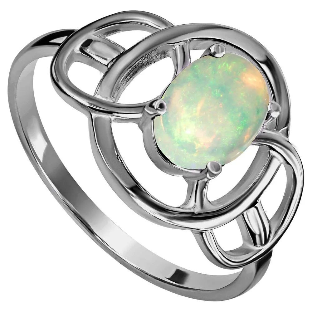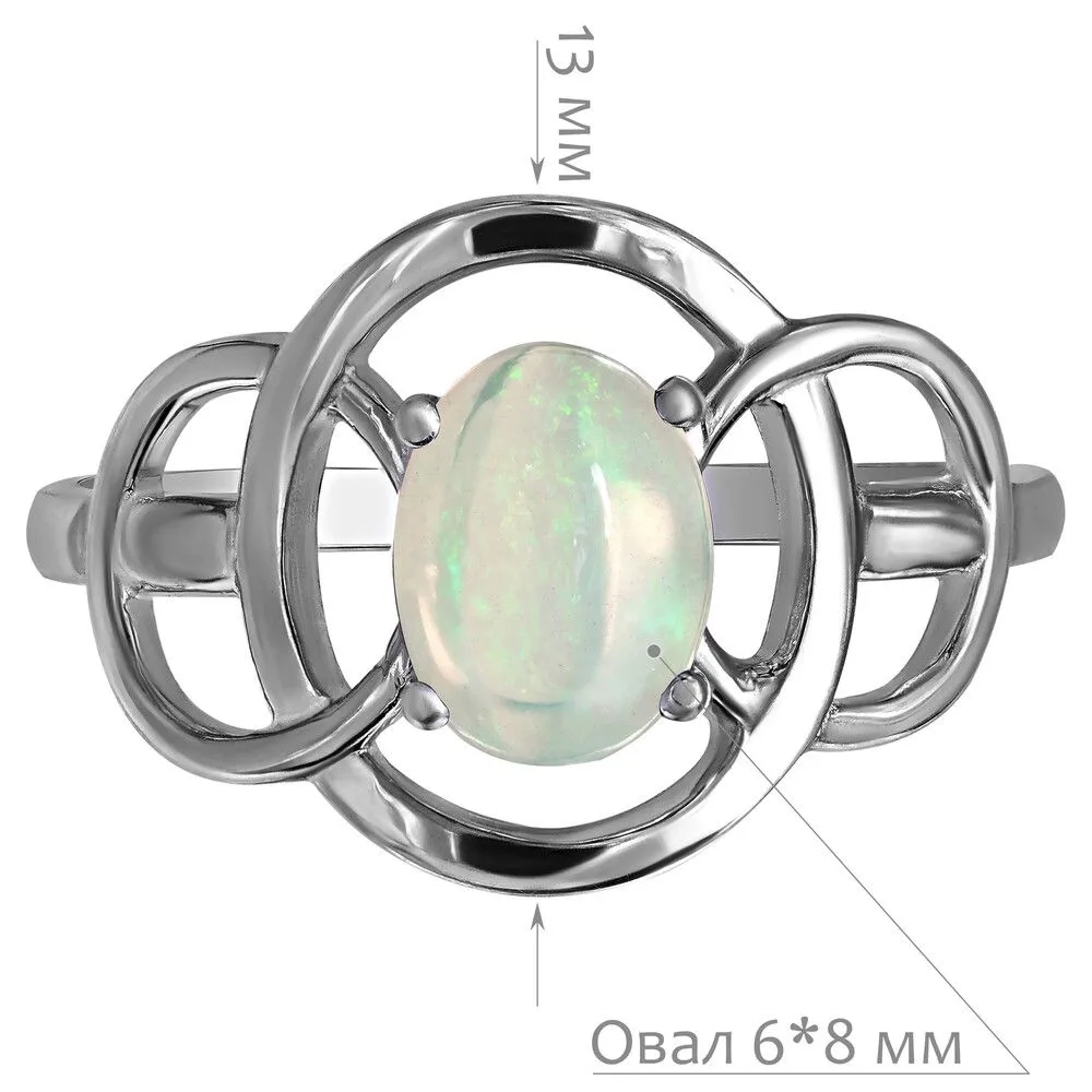 Серебряное кольцо с натуральным опалом (каб.) - коллекция Юнона / Палладий. Средний вес украшения с камнями 2.1 гр. Месторождение: Опал (Эфиопия). Ювелирные вставки: Опал (Натуральный) овал 6*8 мм., средний вес: 0.75 карат. Все изделия собственного производства и имеют гарантию 12 месяцев, к каждому изделию прилагается паспорт. Арт. 8920PD