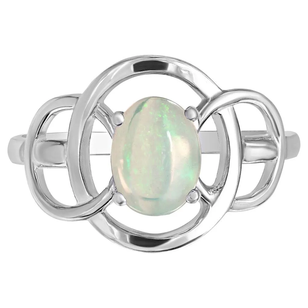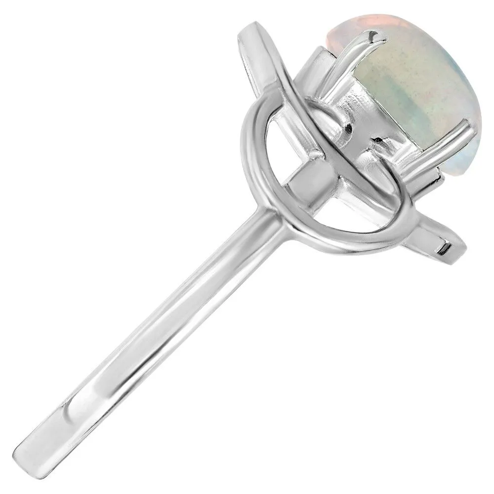 Серебряное кольцо с натуральным опалом (каб.) - коллекция Юнона / Белый Родий. Средний вес украшения с камнями 2.1 гр. Месторождение: Опал (Эфиопия). Ювелирные вставки: Опал (Натуральный) овал 6*8 мм., средний вес: 0.75 карат. Все изделия собственного производства и имеют гарантию 12 месяцев, к каждому изделию прилагается паспорт. Арт. 8920WR