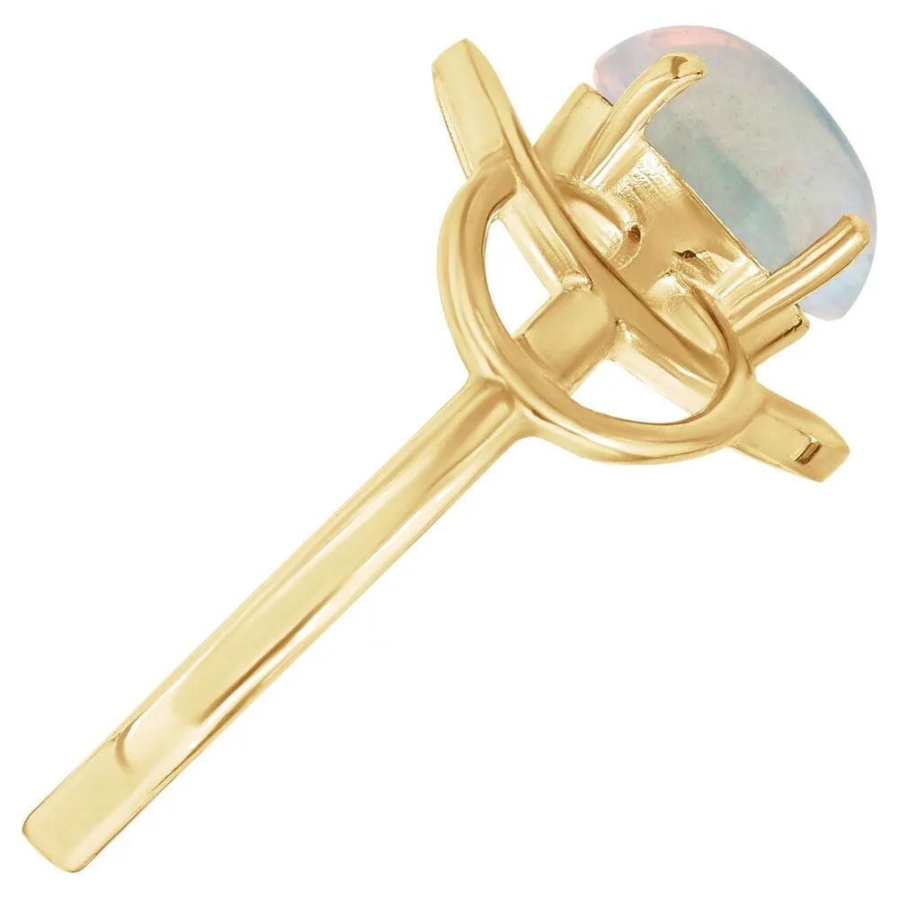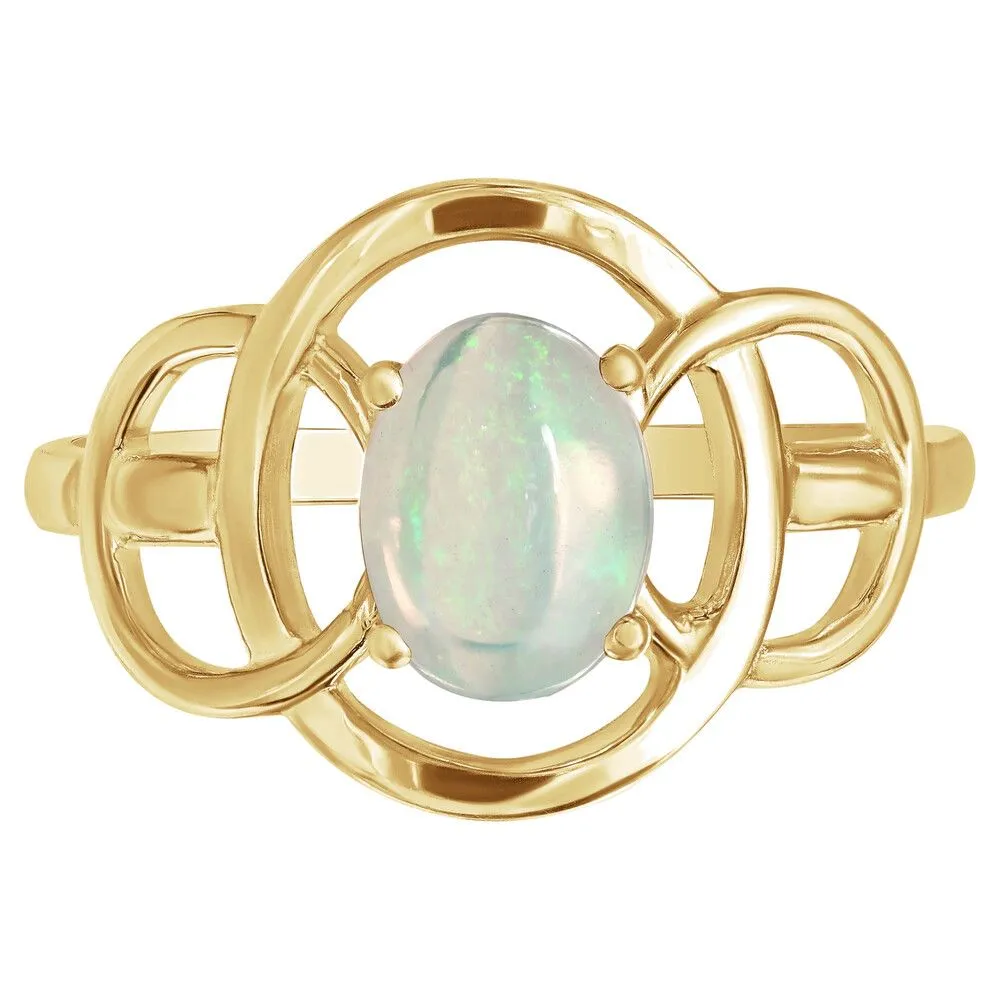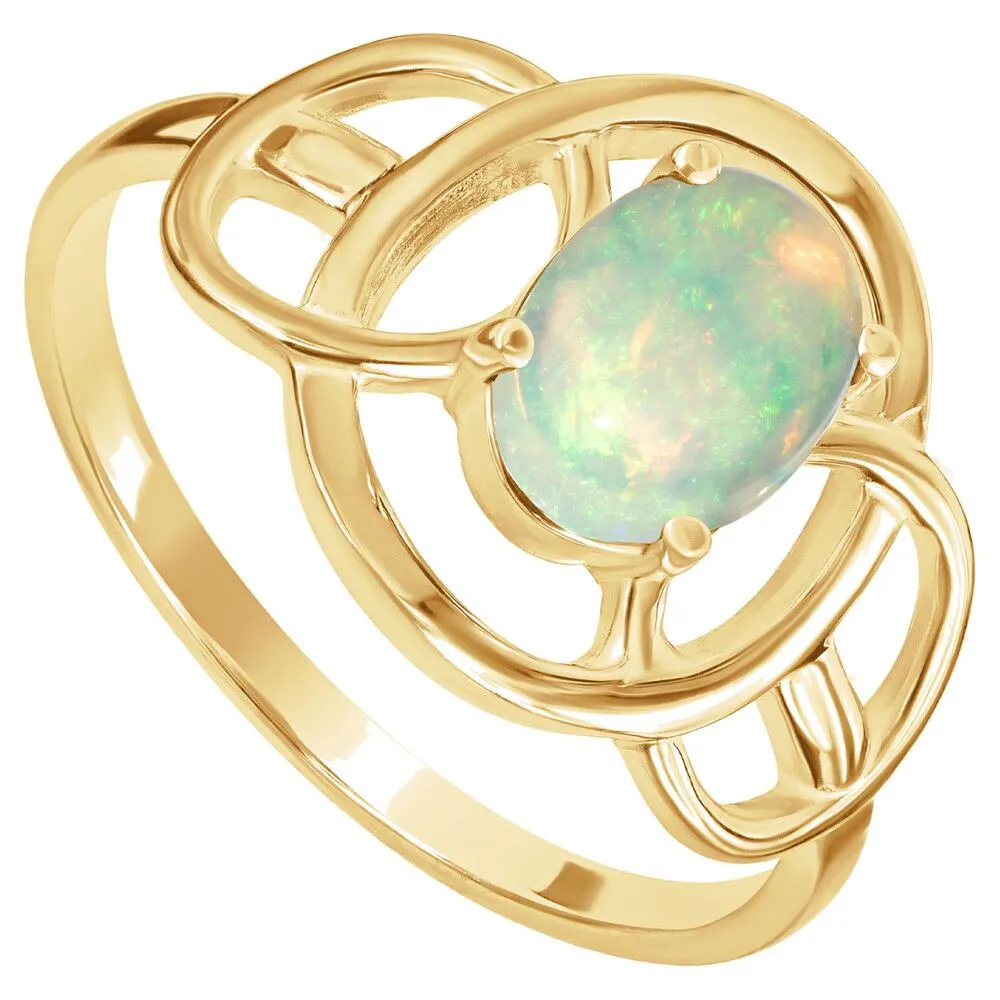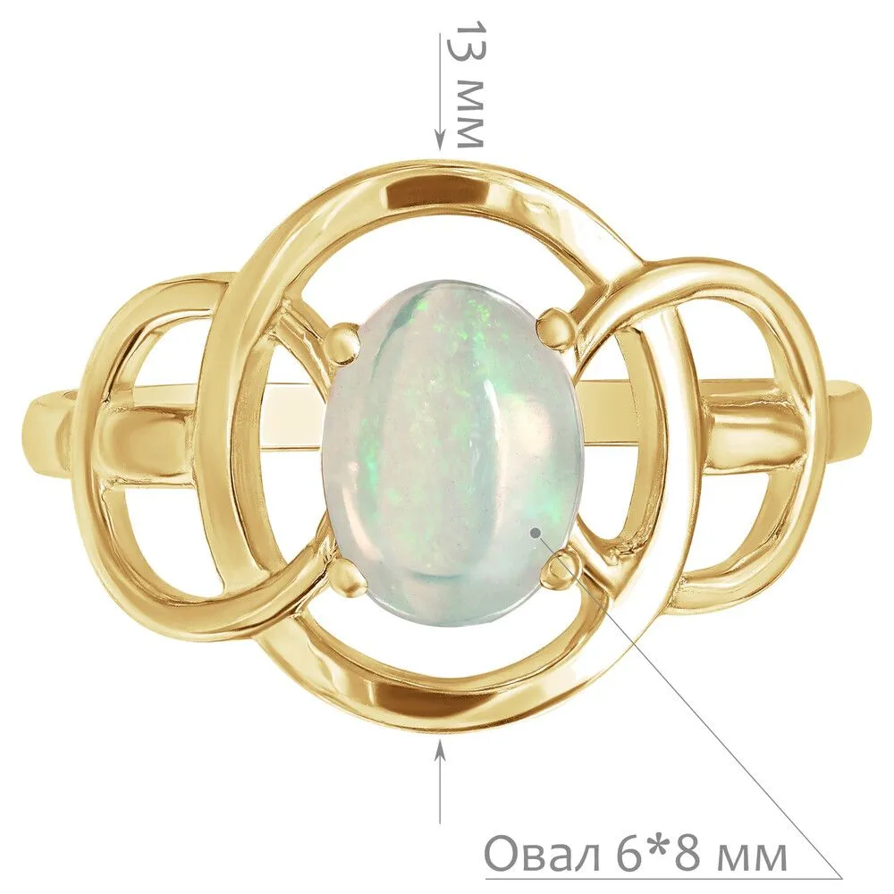 Серебряное кольцо с натуральным опалом (каб.) - коллекция Юнона / Желтое Золото. Средний вес украшения с камнями 2.1 гр. Месторождение: Опал (Эфиопия). Ювелирные вставки: Опал (Натуральный) овал 6*8 мм., средний вес: 0.75 карат. Все изделия собственного производства и имеют гарантию 12 месяцев, к каждому изделию прилагается паспорт. Арт. 8920YG