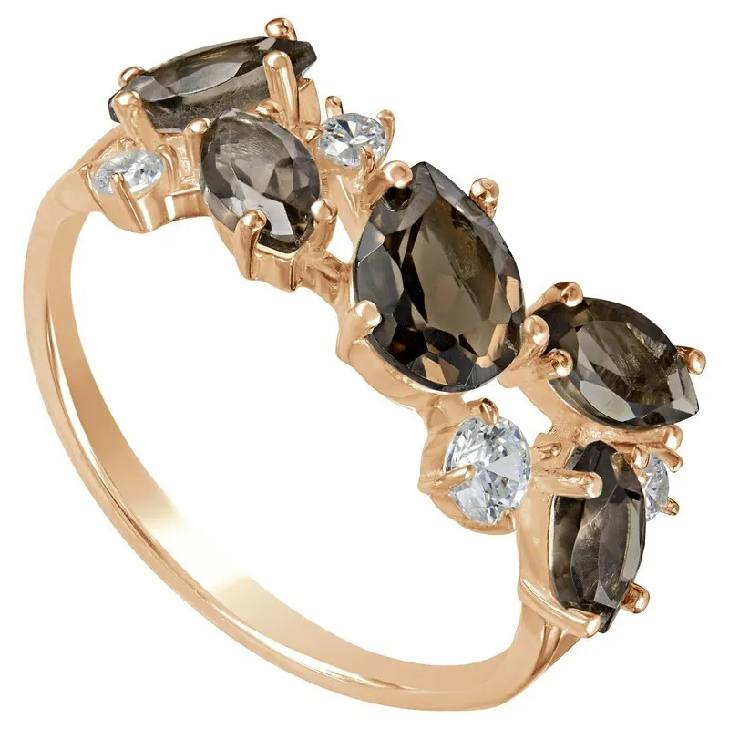 Серебряное кольцо с натуральным раухтопазом - коллекция Росинка. Серебряное кольцо 925 пробы с покрытием розовое золото. Цвет покрытия соответствует швейцарскому цветовому стандарту NIHS -4N и цвету розового золота 585 в России. На последней фотографии мы разместили сравнительную фотографию 3 цвета золотого покрытия. Помимо предания золотого цвета Вашему изделию, тонкий слой золота защищает от окисления. Для более стойкого эффекта золочения и долговечности покрытия мы дополнительно наносим подслой палладия (Pd). Средний вес изделия с камнями 2.51 гр. Месторождение: Раухтопаз (Дымчатый кварц) (м-ние Додо ХМАО, Россия). Раухтопаз (Натуральный) груша 5*7 мм., средний вес: 0.63 карат. Все изделия собственного производства, гарантия 12 месяцев. Арт. 8436. Раухтопаз – это разновидность кварца. Ранее он использовался в ювелирных украшениях, при вышивке картин, для магических ритуалов. Его влияние на владельца сразу становится заметно — человек успокаивается и становится рассудительным, легче выходит из депрессивных состояний. Часто использовался в приворотах, заговорах или для связи с миром духов.
