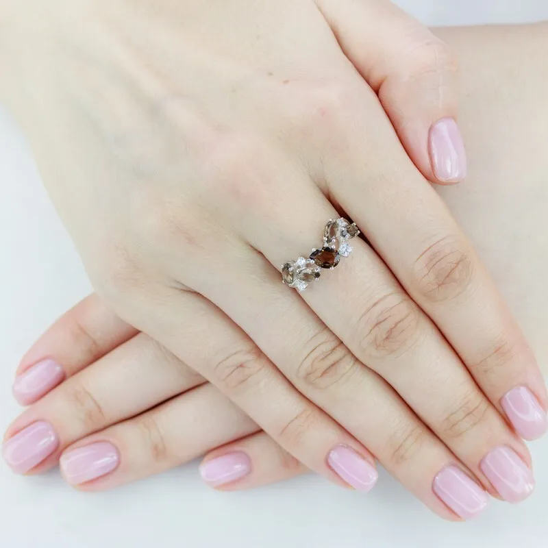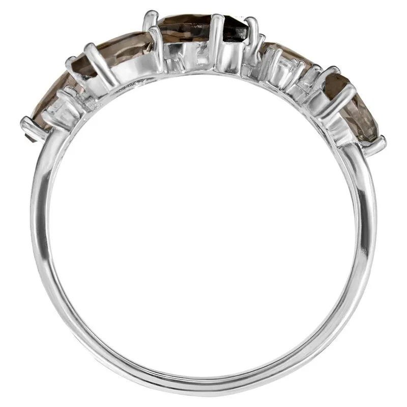 Серебряное кольцо с натуральным раухтопазом - коллекция Росинка / покрытие Белый Родий