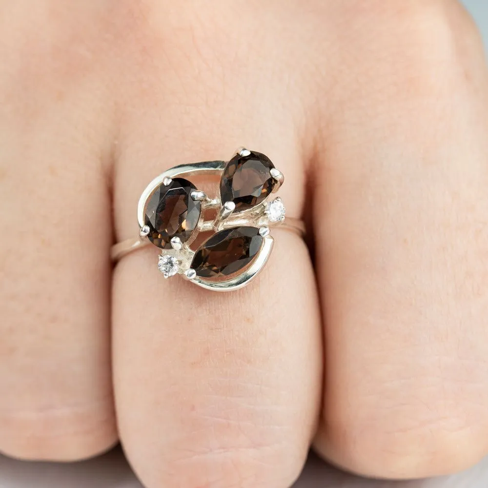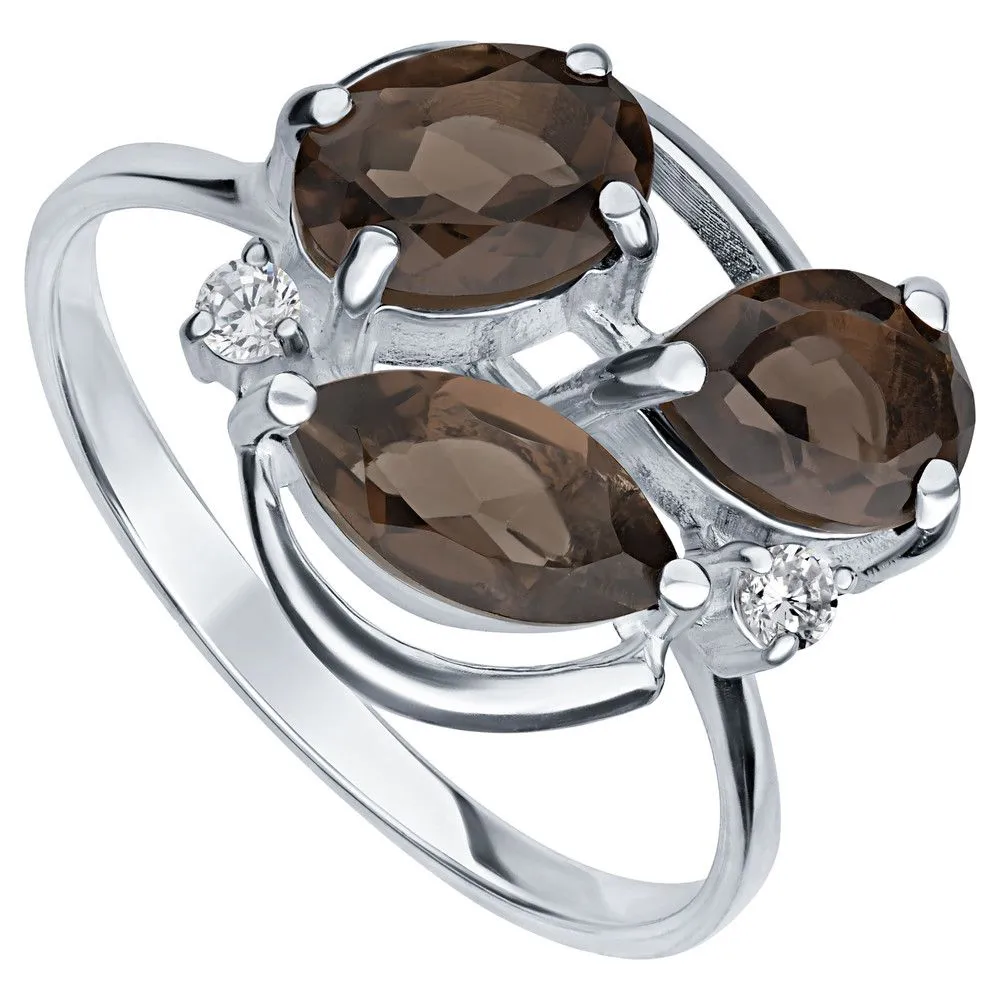 Серебряное кольцо с натуральным раухтопазом - коллекция Фортуна / Без покрытия. Средний вес украшения с камнями 2.94 гр. Месторождение: Раухтопаз (Дымчатый кварц) (м-ие Додо ХМАО, Россия) Ювелирные вставки: Раухтопаз (Натуральный) груша 5*7 мм., средний вес: 0.63 карат. Раухтопаз (Натуральный) овал 5*7 мм., средний вес: 0.75 карат. (Натуральный) круг 2 мм., средний вес: 0.06 карат. Все изделия собственного производства и имеют гарантию 12 месяцев. Арт. 8771NP. Раухтопаз – это разновидность кварца. Ранее он использовался в ювелирных украшениях, при вышивке картин, для магических ритуалов. Его влияние на владельца сразу становится заметно — человек успокаивается и становится рассудительным, легче выходит из депрессивных состояний. Часто использовался в приворотах, заговорах или для связи с миром духов.