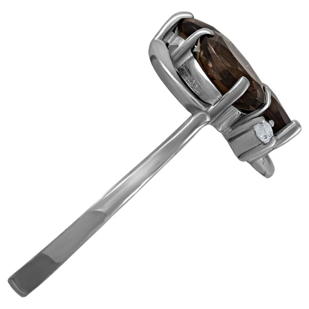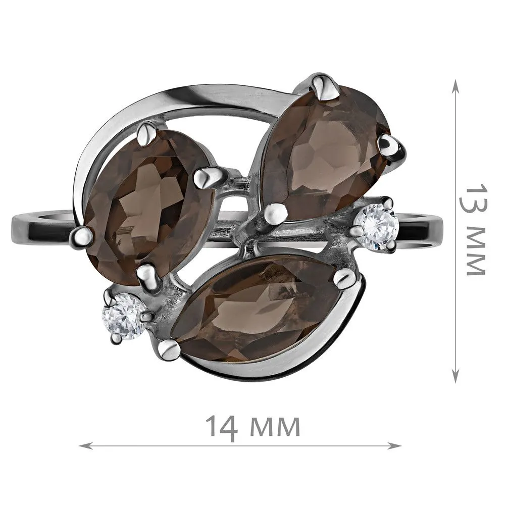 Серебряное кольцо с натуральным раухтопазом - коллекция Фортуна / покрытие Палладий. Средний вес украшения с камнями 2.96 гр. Месторождение: Раухтопаз (Дымчатый кварц) (м-ие Додо ХМАО, Россия) Ювелирные вставки: Раухтопаз (Натуральный) груша 5*7 мм., средний вес: 0.63 карат. Раухтопаз (Натуральный) овал 5*7 мм., средний вес: 0.75 карат. (Натуральный) круг 2 мм., средний вес: 0.06 карат. Все изделия собственного производства и имеют гарантию 12 месяцев. Арт. 8771PD. Раухтопаз – это разновидность кварца. Ранее он использовался в ювелирных украшениях, при вышивке картин, для магических ритуалов. Его влияние на владельца сразу становится заметно — человек успокаивается и становится рассудительным, легче выходит из депрессивных состояний. Часто использовался в приворотах, заговорах или для связи с миром духов.