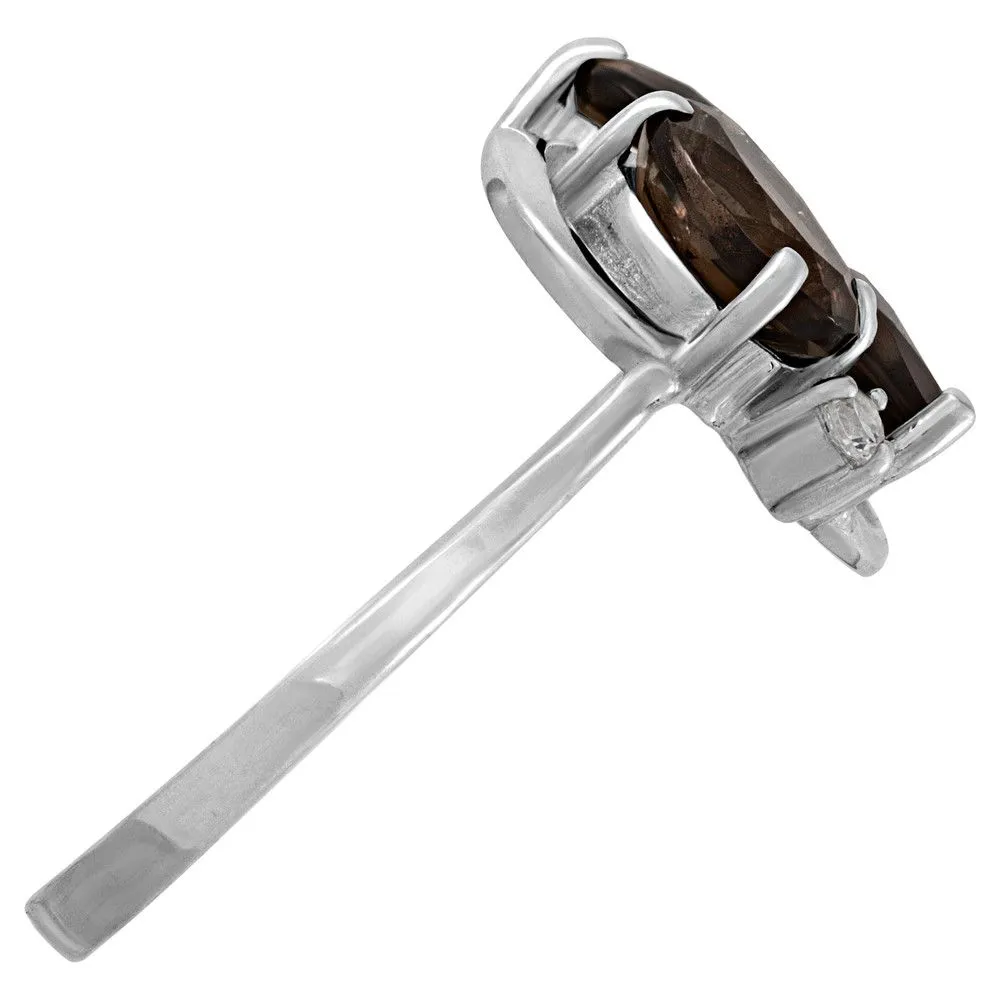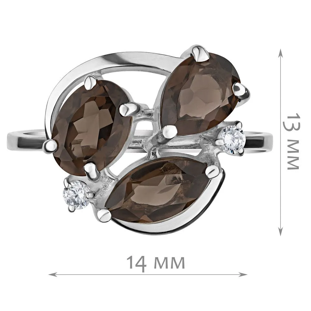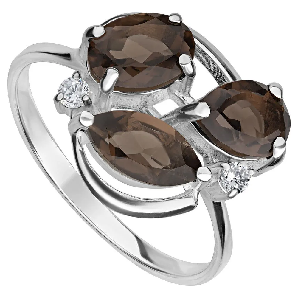 Серебряное кольцо с натуральным раухтопазом - коллекция Фортуна / покрытие Белый Родий. Средний вес украшения с камнями 2.93 гр. Месторождение: Раухтопаз (Дымчатый кварц) (м-ие Додо ХМАО, Россия) Ювелирные вставки: Раухтопаз (Натуральный) груша 5*7 мм., средний вес: 0.63 карат. Раухтопаз (Натуральный) овал 5*7 мм., средний вес: 0.75 карат. (Натуральный) круг 2 мм., средний вес: 0.06 карат. Все изделия собственного производства и имеют гарантию 12 месяцев. Арт. 8771WR. Раухтопаз – это разновидность кварца. Ранее он использовался в ювелирных украшениях, при вышивке картин, для магических ритуалов. Его влияние на владельца сразу становится заметно — человек успокаивается и становится рассудительным, легче выходит из депрессивных состояний. Часто использовался в приворотах, заговорах или для связи с миром духов.