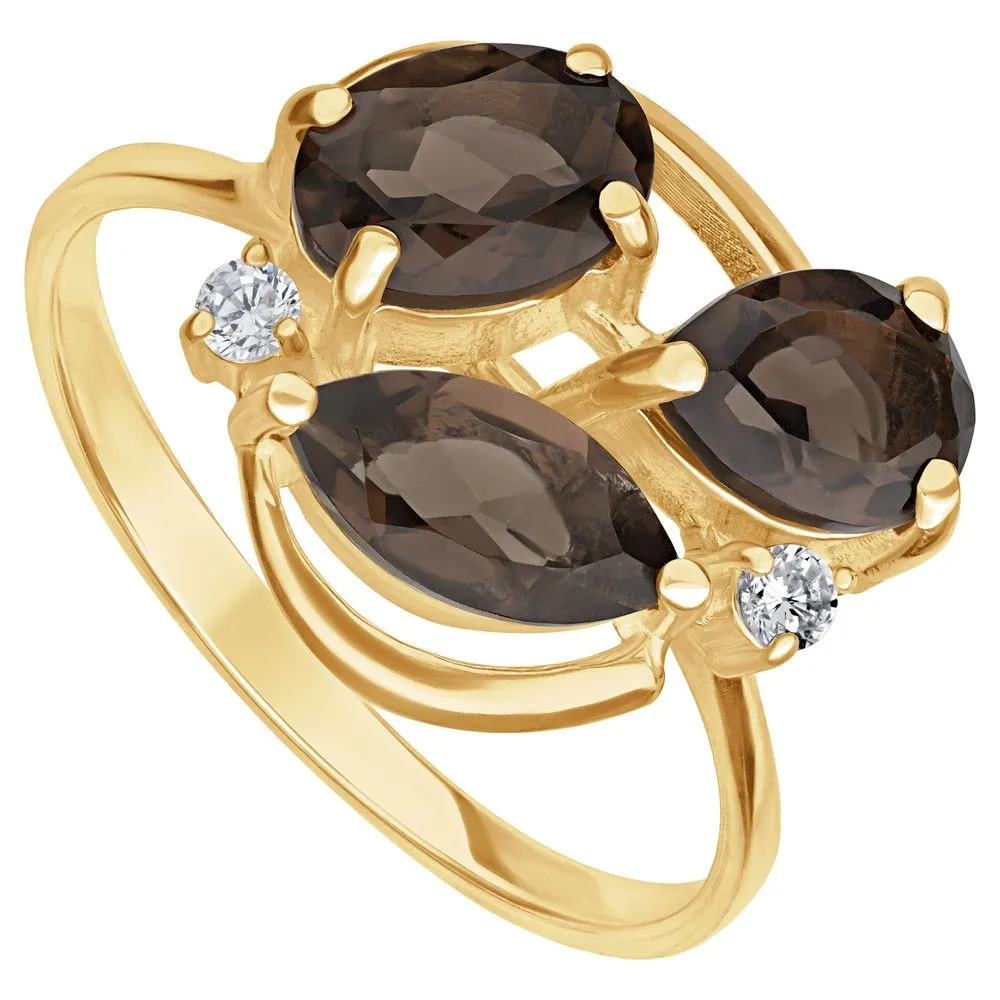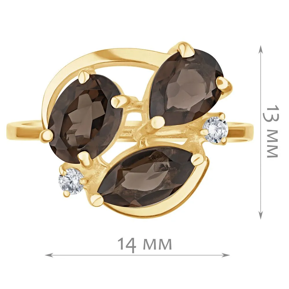 Серебряное кольцо с натуральным раухтопазом - коллекция Фортуна / покрытие Желтое Золото. Средний вес украшения с камнями 2.94 гр. Месторождение: Раухтопаз (Дымчатый кварц) (м-ие Додо ХМАО, Россия) Ювелирные вставки: Раухтопаз (Натуральный) груша 5*7 мм., средний вес: 0.63 карат. Раухтопаз (Натуральный) овал 5*7 мм., средний вес: 0.75 карат. (Натуральный) круг 2 мм., средний вес: 0.06 карат. Все изделия собственного производства и имеют гарантию 12 месяцев. Арт. 8771YG.