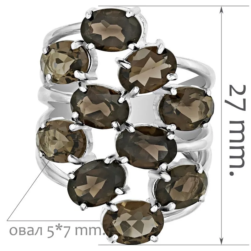 Серебряное кольцо с натуральным раухтопазом (дымчатый кварц) - коллекция Аэлита. Средний вес изделия с камнями 9.81 гр. Месторождение: Раухтопаз (Дымчатый кварц) (м-ие Додо ХМАО, Россия). Раухтопаз (Натуральный) овал 5*7 мм., средний вес: 0.75 карат. Все изделия собственного производства, гарантия 12 месяцев. Арт. 7838. Раухтопаз – это разновидность кварца. Ранее он использовался в ювелирных украшениях, при вышивке картин, для магических ритуалов. Его влияние на владельца сразу становится заметно — человек успокаивается и становится рассудительным, легче выходит из депрессивных состояний. Часто использовался в приворотах, заговорах или для связи с миром духов.