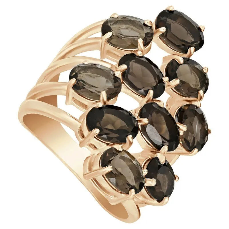 Серебряное кольцо с натуральным раухтопазом (дымчатый кварц) - коллекция Аэлита. Серебряное кольцо 925 пробы с покрытием розовое золото. Цвет покрытия соответствует швейцарскому цветовому стандарту NIHS -4N и цвету розового золота 585 в России. На последней фотографии мы разместили сравнительную фотографию 3 цвета золотого покрытия. Помимо предания золотого цвета Вашему изделию, тонкий слой золота защищает от окисления. Для более стойкого эффекта золочения и долговечности покрытия мы дополнительно наносим подслой палладия (Pd). Средний вес изделия с камнями 9.81 гр. Месторождение: Раухтопаз (Дымчатый кварц) (м-ие Додо ХМАО, Россия). Раухтопаз (Натуральный) овал 5*7 мм., средний вес: 0.75 карат. Все изделия собственного производства, гарантия 12 месяцев. Арт. 7838. Раухтопаз – это разновидность кварца. Ранее он использовался в ювелирных украшениях, при вышивке картин, для магических ритуалов. Его влияние на владельца сразу становится заметно — человек успокаивается и становится рассудительным, легче выходит из депрессивных состояний. Часто использовался в приворотах, заговорах или для связи с миром духов.