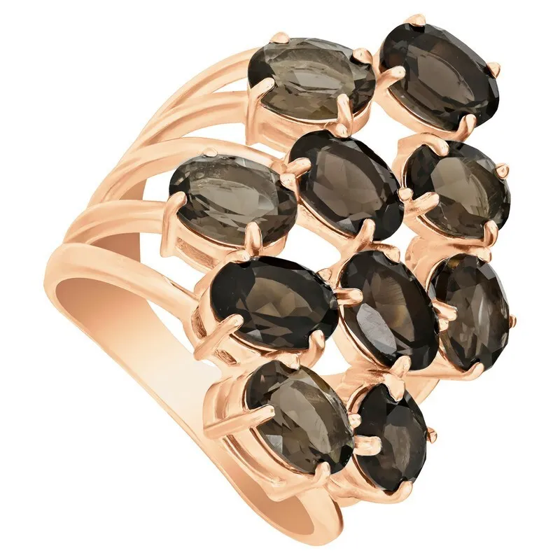 Серебряное кольцо с натуральным раухтопазом (дымчатый кварц) - коллекция Аэлита. Серебряное кольцо 925 пробы с покрытием красное золото. Цвет покрытия соответствует швейцарскому цветовому стандарту NIHS -5N и цвету красного золота 585 в России. На последней фотографии мы разместили сравнительную фотографию 3 цвета золотого покрытия. Помимо предания золотого цвета Вашему изделию, тонкий слой золота защищает от окисления. Для более стойкого эффекта золочения и долговечности покрытия мы дополнительно наносим подслой палладия (Pd). Средний вес изделия с камнями 9.81 гр. Месторождение: Раухтопаз (Дымчатый кварц) (м-ие Додо ХМАО, Россия). Раухтопаз (Натуральный) овал 5*7 мм., средний вес: 0.75 карат. Все изделия собственного производства, гарантия 12 месяцев. Арт. 7838. Раухтопаз – это разновидность кварца. Ранее он использовался в ювелирных украшениях, при вышивке картин, для магических ритуалов. Его влияние на владельца сразу становится заметно — человек успокаивается и становится рассудительным, легче выходит из депрессивных состояний. Часто использовался в приворотах, заговорах или для связи с миром духов.