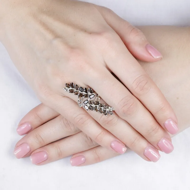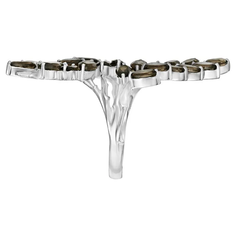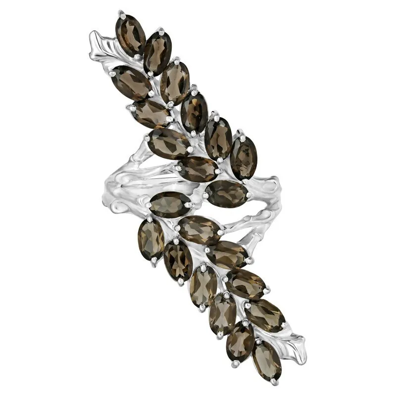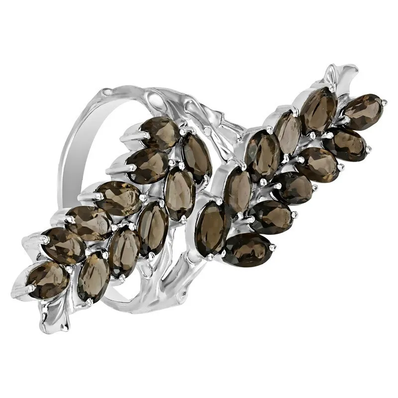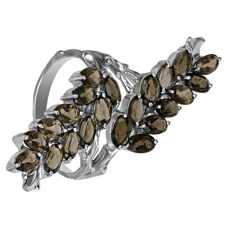 Серебряное кольцо с натуральным раухтопазом - коллекция Флора. Средний вес изделия с камнями 5.69 гр. Месторождение(я): Раухтопаз (Дымчатый кварц) (м-ие Додо ХМАО, Россия). Раухтопаз (Натуральный) овал 3*5 мм., средний вес: 0.2 карат. Размер лицевой части: 15*44 мм. Все изделия собственного производства, гарантия 12 месяцев. Арт. 7863
