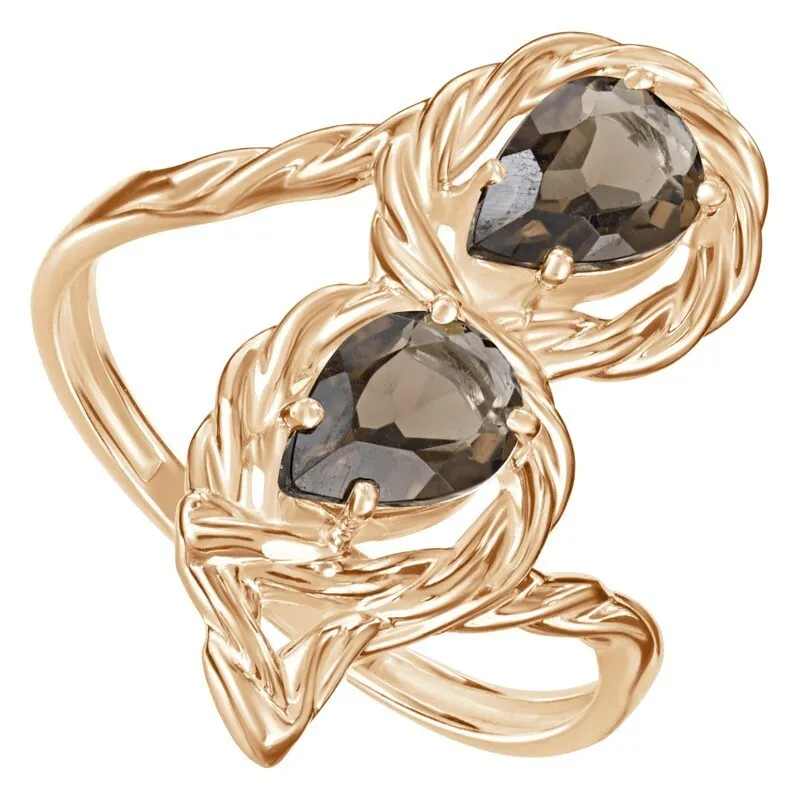 Серебряное кольцо с натуральным раухтопазом - коллекция Ривьера. Серебряное кольцо 925 пробы с покрытием розовое золото. Цвет покрытия соответствует швейцарскому цветовому стандарту NIHS -4N и цвету розового золота 585 в России. На последней фотографии мы разместили сравнительную фотографию 3 цвета золотого покрытия. Помимо предания золотого цвета Вашему изделию, тонкий слой золота защищает от окисления. Для более стойкого эффекта золочения и долговечности покрытия мы дополнительно наносим подслой палладия (Pd). Средний вес изделия с камнями 2.66 гр. Месторождение: Раухтопаз (Дымчатый кварц) (м-ние Додо ХМАО, Россия). Раухтопаз (Натуральный) груша 5*7 мм., средний вес: 0.63 карат. Все изделия собственного производства, гарантия 12 месяцев. Арт. 8088