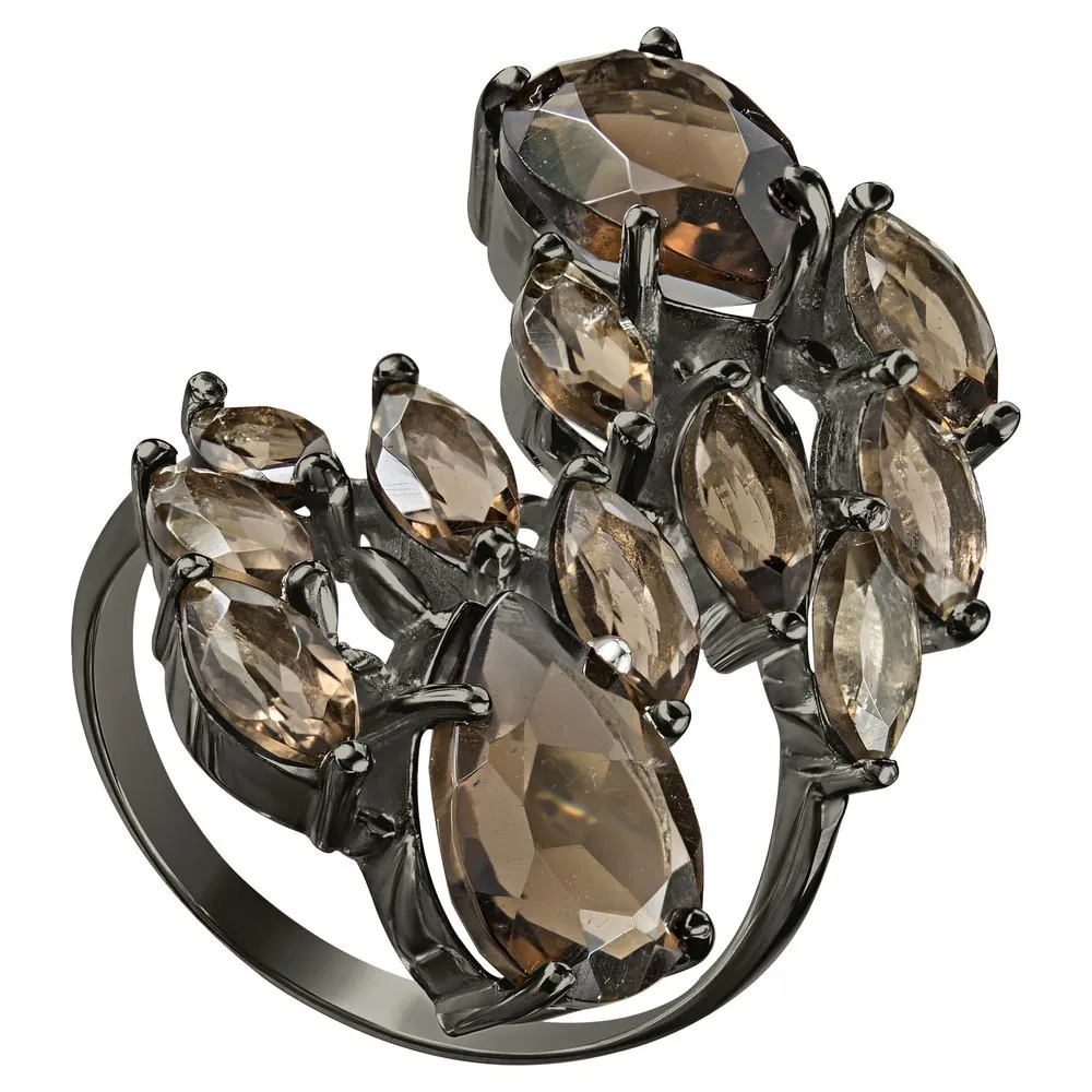 Серебряное кольцо с натуральным раухтопазом - коллекция Зарница, покрытие Черный Родий.