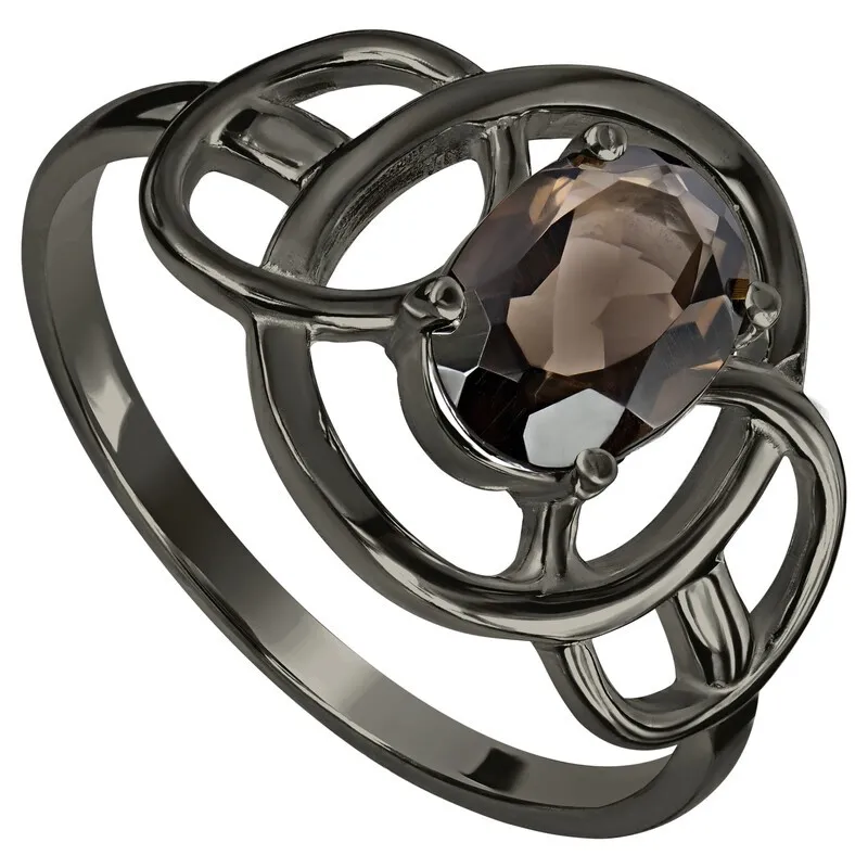 Серебряное кольцо с натуральным раухтопазом - коллекция Юнона, покрытие Черный Родий.