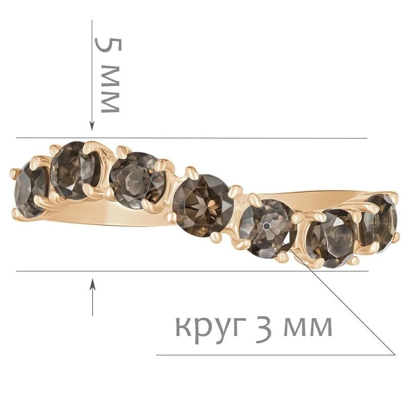Серебряное кольцо с натуральным раухтопазом - коллекция Волна / Красное Золото. Средний вес украшения с камнями 1.13 гр. Месторождение: Раухтопаз (Дымчатый кварц) (м-ие Додо ХМАО, Россия). Ювелирные вставки: Раухтопаз (Натуральный) круг 3 мм., средний вес: 0.13 карат. Все изделия собственного производства и имеют гарантию 12 месяцев, к каждому изделию прилагается паспорт. Арт. 8729RG