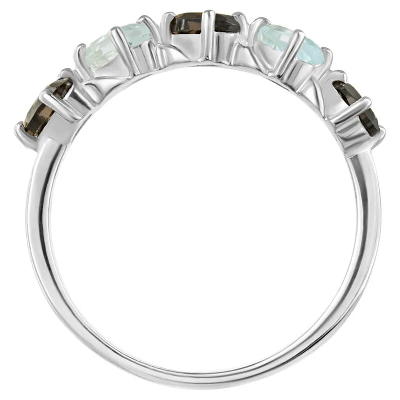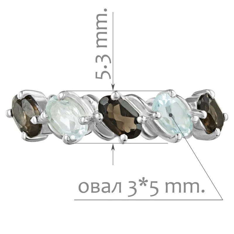 Серебряное кольцо с натуральными камнями раухтопаз и топаз - коллекция Колосок. Средний вес изделия с камнями 2.24 гр. Месторождения: Раухтопаз (Дымчатый кварц)(м-ие Додо ХМАО, Россия) и Голубой топаз (Ильменские горы, Россия) Раухтопаз (Натуральный) овал 3*5 мм., средний вес: 0.32 карат. Топаз (Натуральный) овал 3*5 мм., средний вес: 0.32 карат. Все изделия собственного производства, гарантия 12 месяцев. Арт. 8041