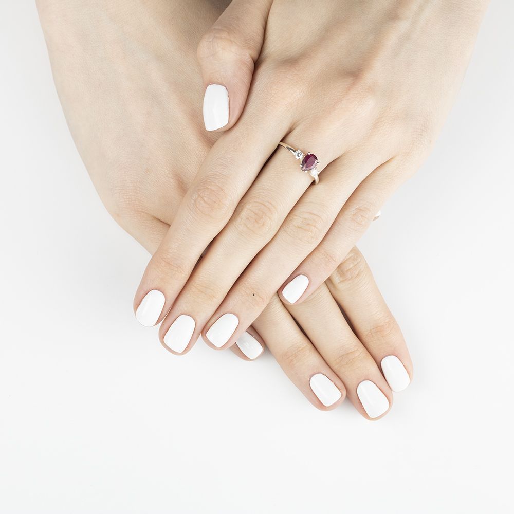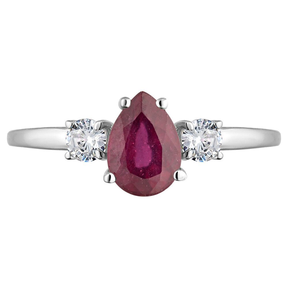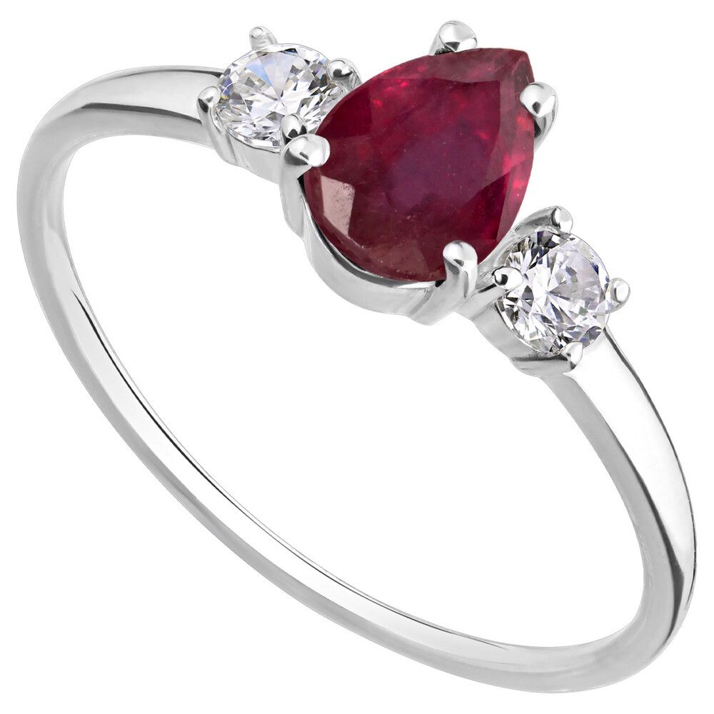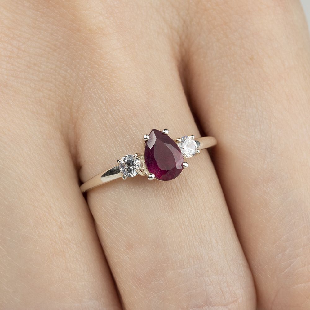 Серебряное кольцо с натуральным рубином - коллекция Алсу (малая) / Без покрытия. Средний вес украшения с камнями 1.34 гр. Месторождение: Рубин (Восточная Африка). Ювелирные вставки: Рубин (Натуральный) груша 5*7 мм., средний вес: 0.99 карат. Белый Нанокристалл круг 3 мм. Все изделия собственного производства и имеют гарантию 12 месяцев, к каждому изделию прилагается паспорт. Арт. 8806NP