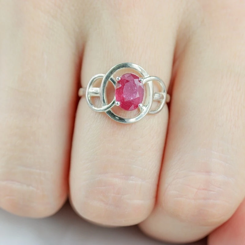 Серебряное кольцо с натуральным рубином - коллекция Юнона. Средний вес изделия с камнями 2.38 гр. Месторождение: Рубин (Восточная Африка). Рубин (Натуральный) овал 6*8 мм., средний вес: 2.25 карат. Все изделия собственного производства, гарантия 12 месяцев. Арт. 8407. Рубин – очень красивый и благородный камень, который не только олицетворяет богатство, но и является защитным амулетом. Особенное внимание привлекают так называемые звездные рубины, в которых при огранке начинают просматриваться характерные расходящиеся лучи. Минерал издавна применялся в лечении самых разнообразных заболеваний. Кроме того, он был символом страсти, мог усиливать проявления характера владельца и пробуждал экстрасенсорные способности.