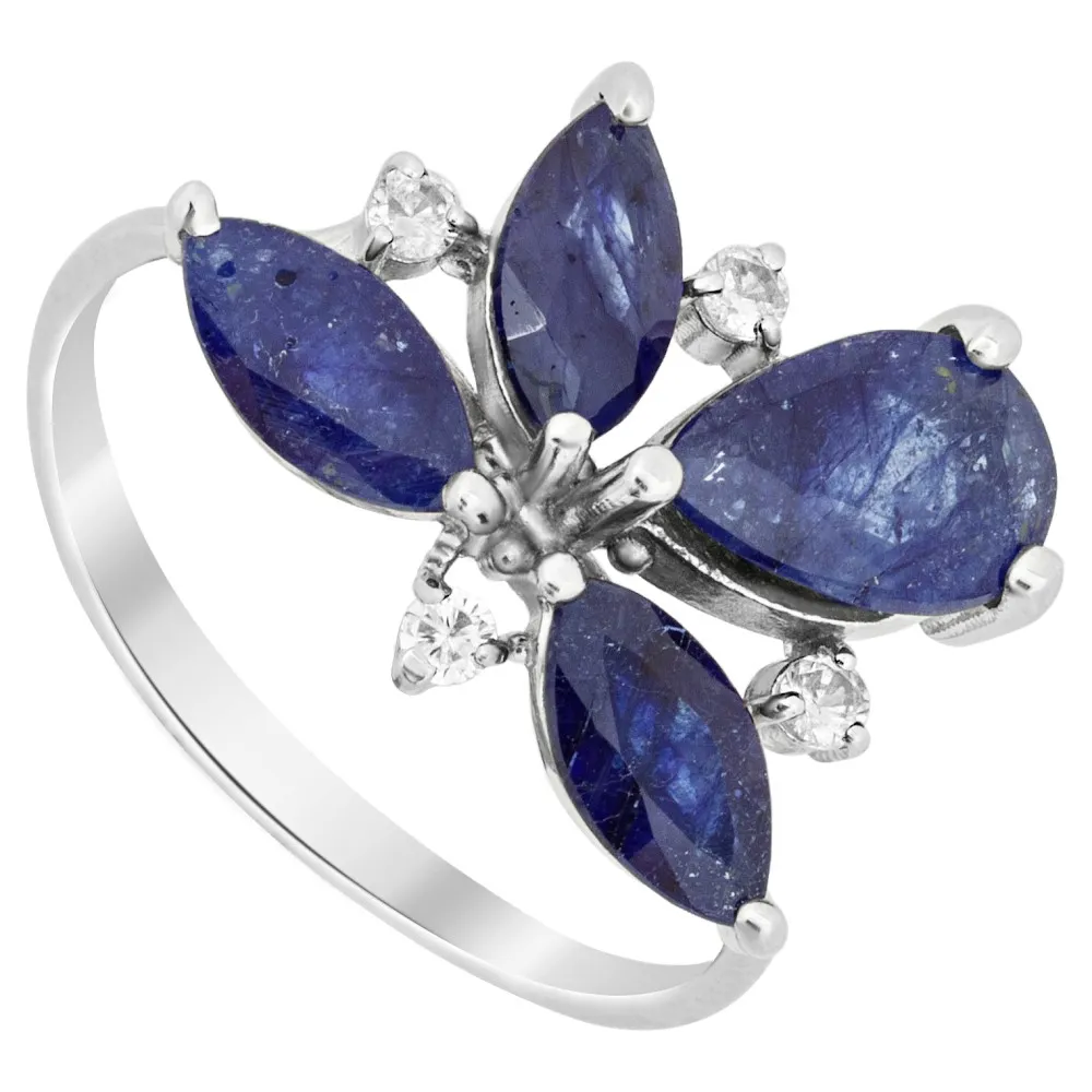 Серебряное кольцо "Аврора" с натуральным сапфиром, покрытие Чистое Серебро. Средний вес украшения с камнями 3,48 гр. Месторождение(я) камней: Сапфир (Мадагаскар). Сапфир (Натуральный) маркиз: 4*8 мм., средний вес 0,80 карат. Сапфир (Натуральный) груша: 6*9 мм., средний вес 1,90 карат.