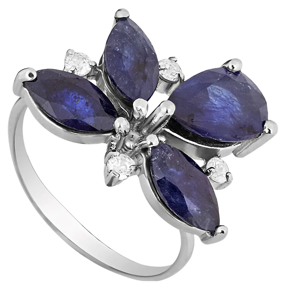 Серебряное кольцо "Аврора" с натуральным сапфиром, покрытие Палладий. Средний вес украшения с камнями 3,48 гр. Месторождение(я) камней: Сапфир (Мадагаскар). Сапфир (Натуральный) маркиз: 4*8 мм., средний вес 0,80 карат. Сапфир (Натуральный) груша: 6*9 мм., средний вес 1,90 карат.