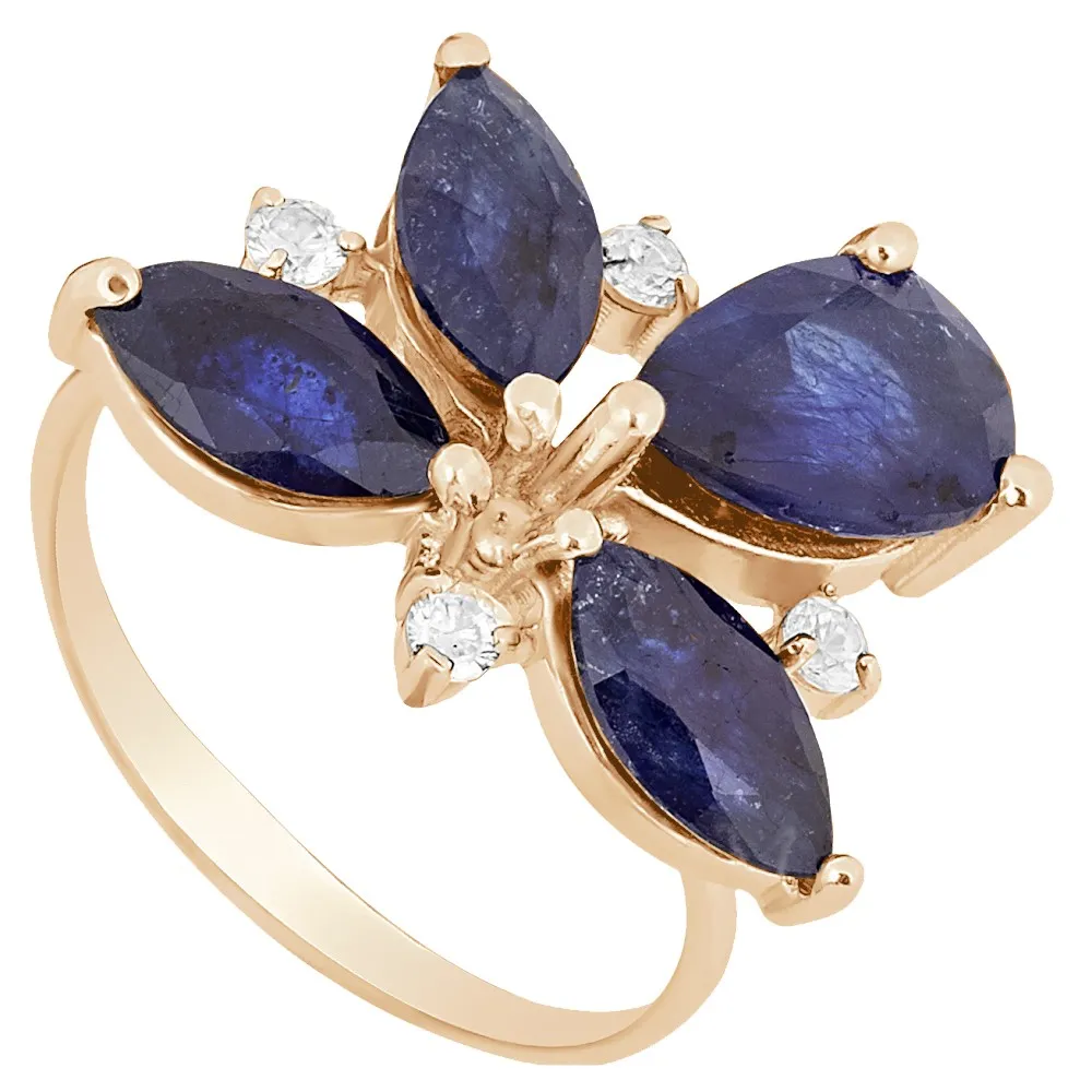 Серебряное кольцо "Аврора" с натуральным сапфиром, покрытие Розовое Золото. Средний вес украшения с камнями 3,48 гр. Месторождение(я) камней: Сапфир (Мадагаскар). Сапфир (Натуральный) маркиз: 4*8 мм., средний вес 0,80 карат. Сапфир (Натуральный) груша: 6*9 мм., средний вес 1,90 карат.