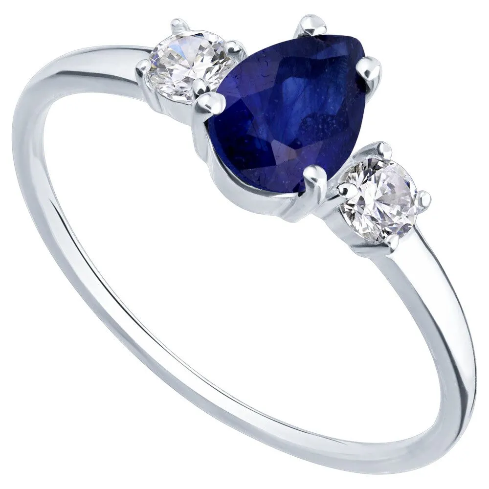 Серебряное кольцо с натуральным сапфиром - коллекция Алсу (малая) / Чистое Серебро. Средний вес украшения с камнями 1.32 гр. Месторождение: Сапфир (Мадагаскар). Ювелирные вставки: Сапфир (Натуральный) груша 5*7 мм., средний вес: 0.95 карат. Белый Нанокристалл круг 3 мм. Все изделия собственного производства и имеют гарантию 12 месяцев, к каждому изделию прилагается паспорт. Арт. 8818AG