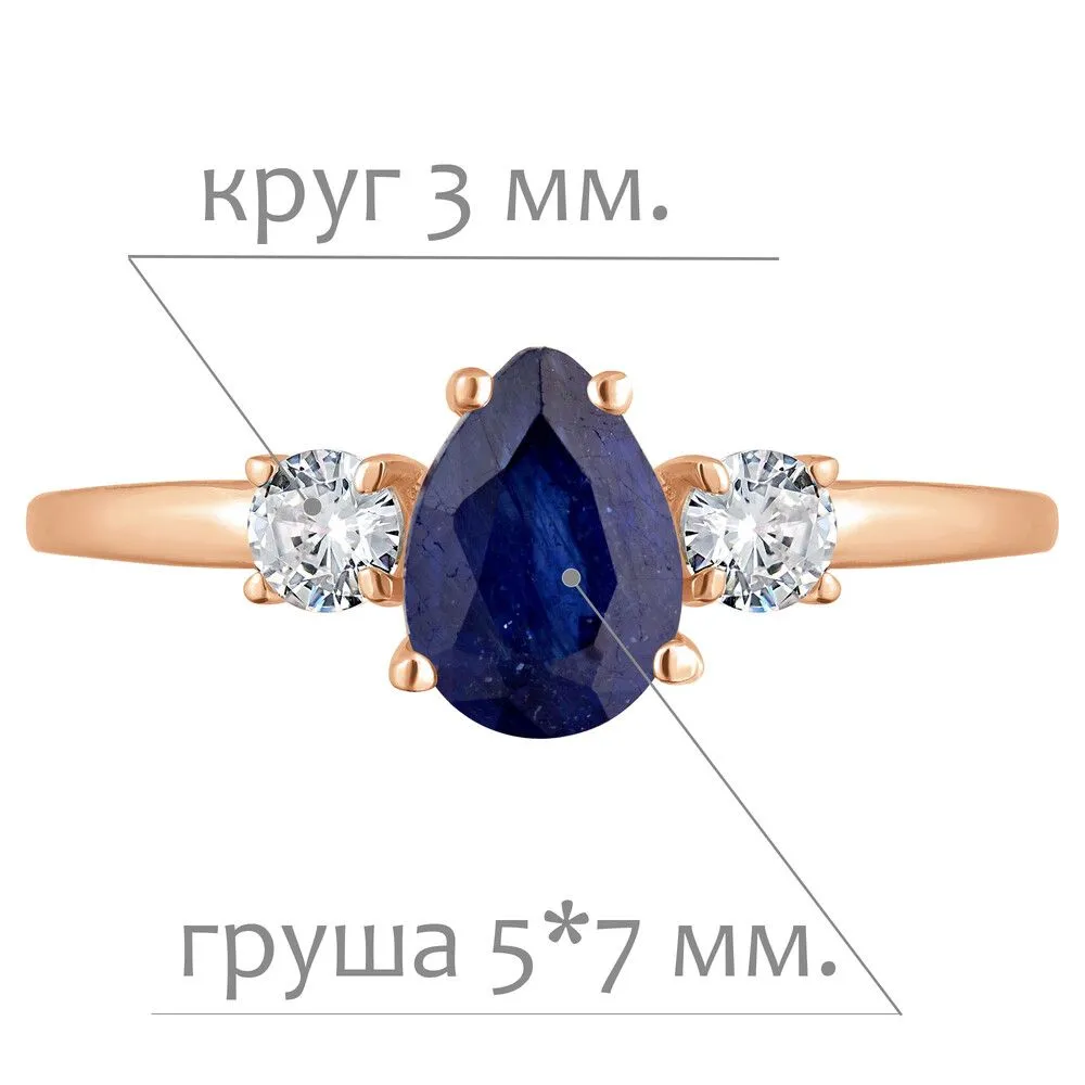 Серебряное кольцо с натуральным сапфиром - коллекция Алсу (малая) / Красное Золото. Средний вес украшения с камнями 1.32 гр. Месторождение: Сапфир (Мадагаскар). Ювелирные вставки: Сапфир (Натуральный) груша 5*7 мм., средний вес: 0.95 карат. Белый Нанокристалл круг 3 мм. Все изделия собственного производства и имеют гарантию 12 месяцев, к каждому изделию прилагается паспорт. Арт. 8818RG