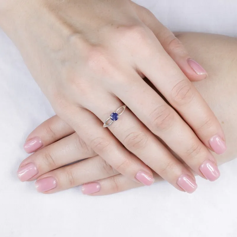 Серебряное кольцо с натуральным сапфиром - коллекция Мона / покрытие Палладий