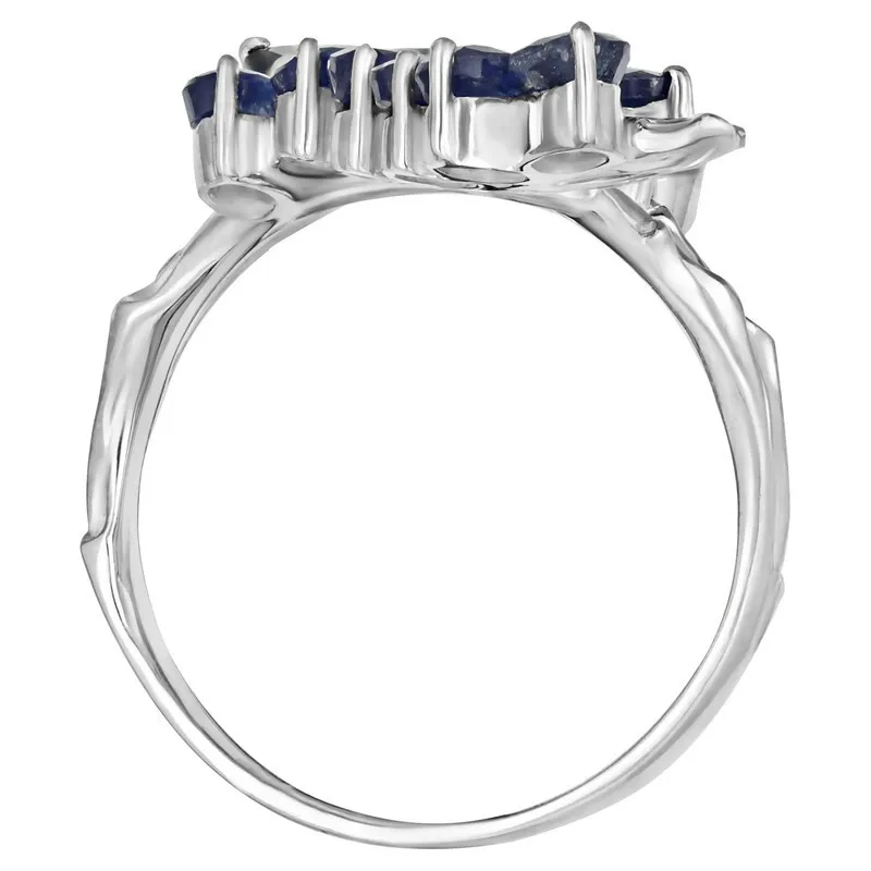 Серебряное кольцо с натуральным сапфиром - коллекция Флора / покрытие Палладий