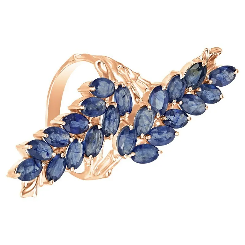 Серебряное кольцо с натуральным сапфиром - коллекция Флора. Серебряное кольцо 925 пробы с покрытием красное золото. Цвет покрытия соответствует швейцарскому цветовому стандарту NIHS -5N и цвету красного золота 585 в России. На последней фотографии мы разместили сравнительную фотографию 3 цвета золотого покрытия. Помимо предания золотого цвета Вашему изделию, тонкий слой золота защищает от окисления. Для более стойкого эффекта золочения и долговечности покрытия мы дополнительно наносим подслой палладия (Pd). Средний вес изделия с камнями 5.77 гр. Месторождение(я): Сапфир (Мадагаскар). Сапфир (Натуральный) овал 3*5 мм., средний вес: 0,46 карат. Размер лицевой части: 15*44 мм. Все изделия собственного производства, гарантия 12 месяцев. Арт. 7868
