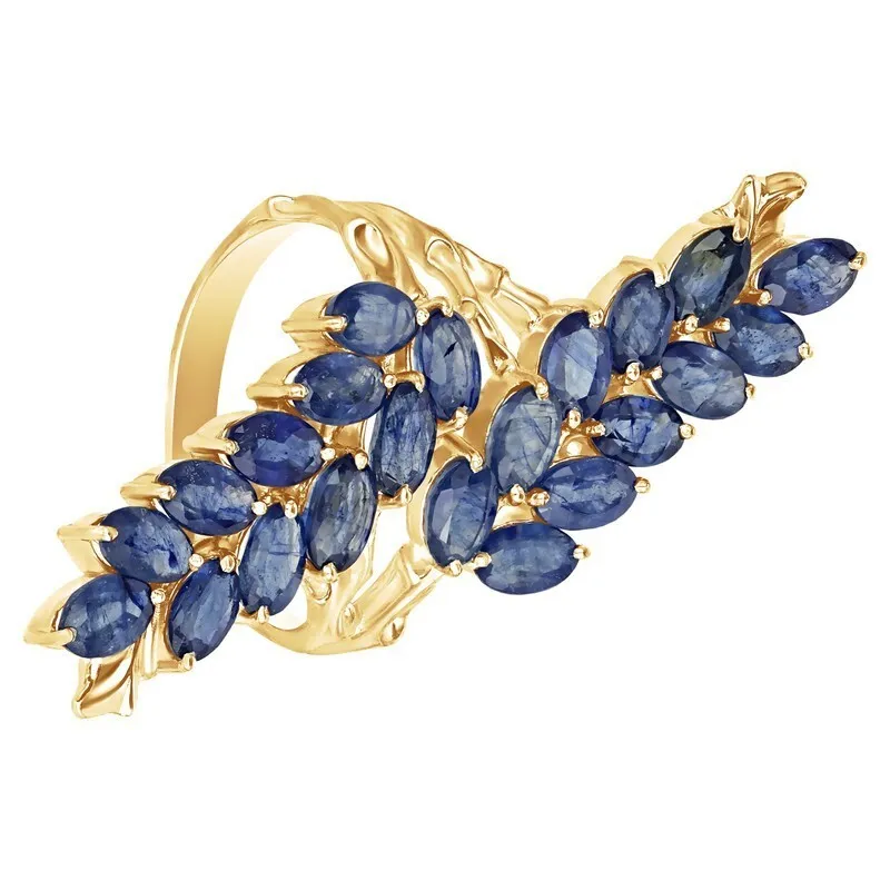 Серебряное кольцо с натуральным сапфиром - коллекция Флора. Серебряное кольцо 925 пробы с покрытием желтое золото. Цвет покрытия соответствует швейцарскому цветовому стандарту NIHS -FF24ct и цвету чистого золото 999.99. На последней фотографии мы разместили сравнительную фотографию 3 цвета золотого покрытия. Помимо предания золотого цвета Вашему изделию, тонкий слой золота защищает от окисления. Для более стойкого эффекта золочения и долговечности покрытия мы дополнительно наносим подслой палладия (Pd). Средний вес изделия с камнями 5.77 гр. Месторождение(я): Сапфир (Мадагаскар). Сапфир (Натуральный) овал 3*5 мм., средний вес: 0,46 карат. Размер лицевой части: 15*44 мм. Все изделия собственного производства, гарантия 12 месяцев. Арт. 7868
