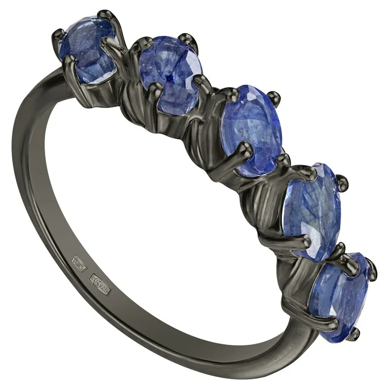 Серебряное кольцо с натуральным сапфиром - коллекция Колосок, покрытие Черный Родий.