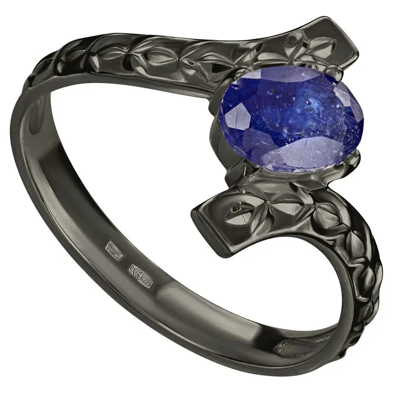 Серебряное кольцо с натуральным сапфиром - коллекция Тея, покрытие Черный Родий.