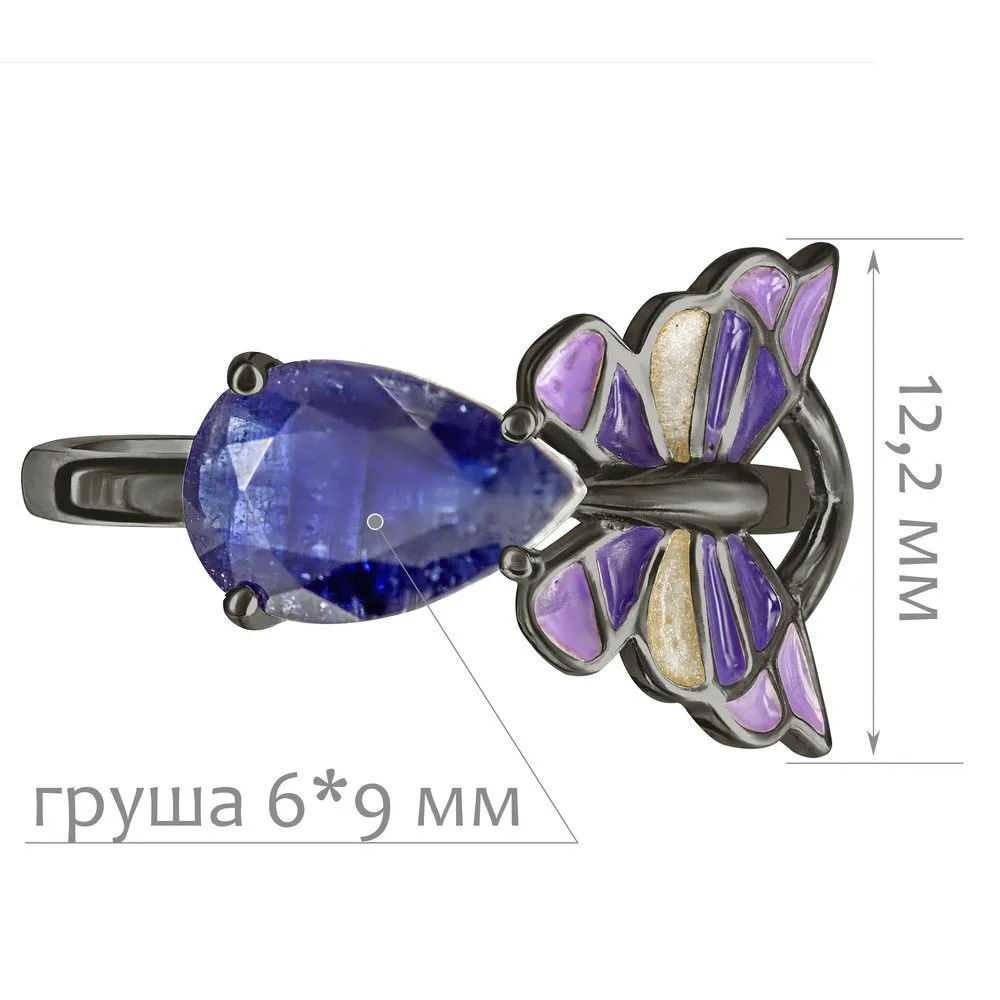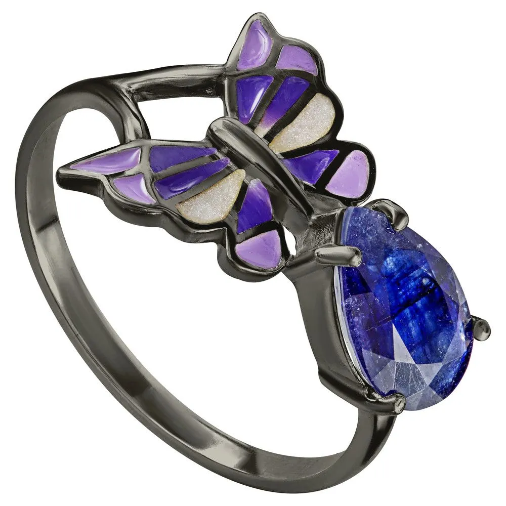 Серебряное кольцо с натуральным сапфиром и эмалью - коллекция Бабочка, покрытие Черный Родий. Средний вес украшения с камнями 2.55 гр. Месторождение: Сапфир (Мадагаскар). Сапфир (Натуральный) груша 6*9 мм., средний вес: 1.83 карат. Все изделия собственного производства и имеют гарантию 12 месяцев, к каждому изделию прилагается паспорт. Арт. 8455BR. Сапфир – это разновидность корунда. Камням различных оттенков приписывались разные свойства. Синие чаще всего ассоциировались с властью. Особенно ценятся звёздчатые сапфиры. Данный минерал часто именуют камнем небес и соотносят с божественным даром. Им дано усмирять человеческие страсти и укреплять волю.