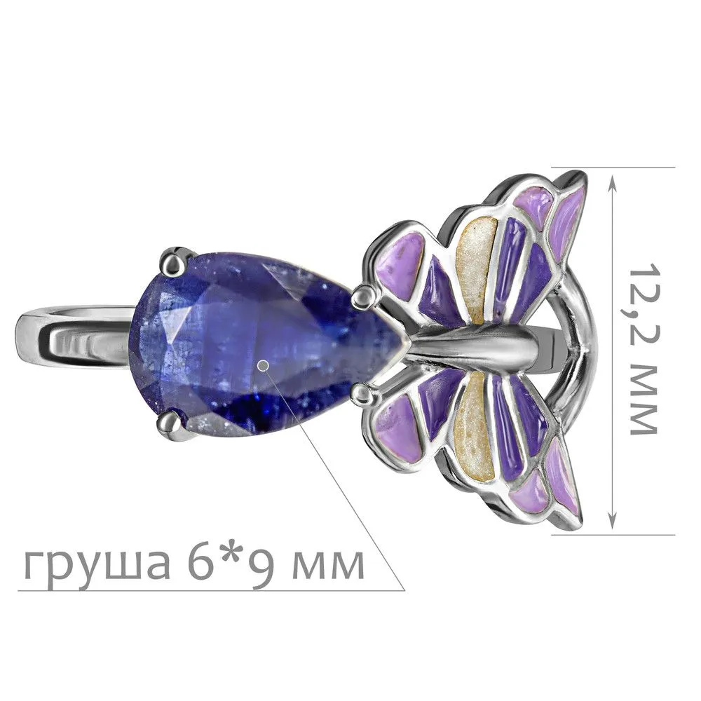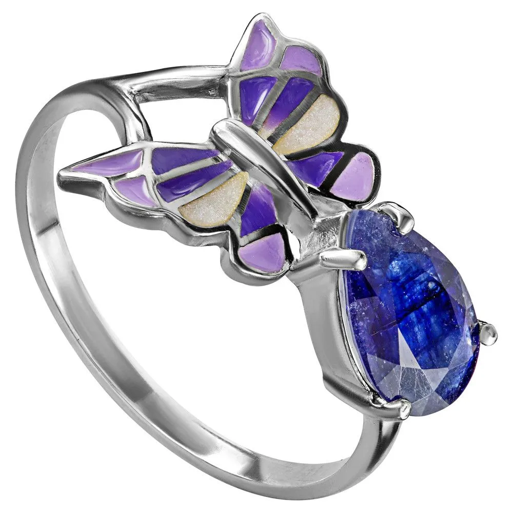 Серебряное кольцо с натуральным сапфиром и эмалью - коллекция Бабочка, покрытие Палладий. Средний вес украшения с камнями 2.55 гр. Месторождение: Сапфир (Мадагаскар). Сапфир (Натуральный) груша 6*9 мм., средний вес: 1.83 карат. Все изделия собственного производства и имеют гарантию 12 месяцев, к каждому изделию прилагается паспорт. Арт. 8455PD. Сапфир – это разновидность корунда. Камням различных оттенков приписывались разные свойства. Синие чаще всего ассоциировались с властью. Особенно ценятся звёздчатые сапфиры. Данный минерал часто именуют камнем небес и соотносят с божественным даром. Им дано усмирять человеческие страсти и укреплять волю.
