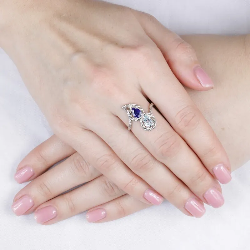 Серебряное кольцо с натуральным топазом и сапфиром - коллекция Ривьера. Средний вес изделия с камнями 2.81 гр. Месторождение(я): Топаз (Ильменские горы, Россия) и Сапфир (Мадагаскар). Сапфир (Натуральный) груша 5*7 мм., средний вес: 1.05 карат. Топаз (Натуральный) груша 5*7 мм., средний вес: 0.85 карат.