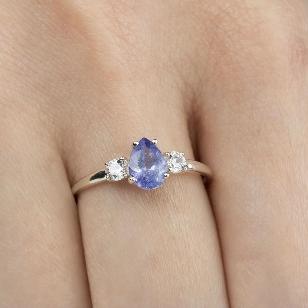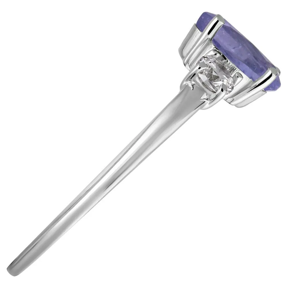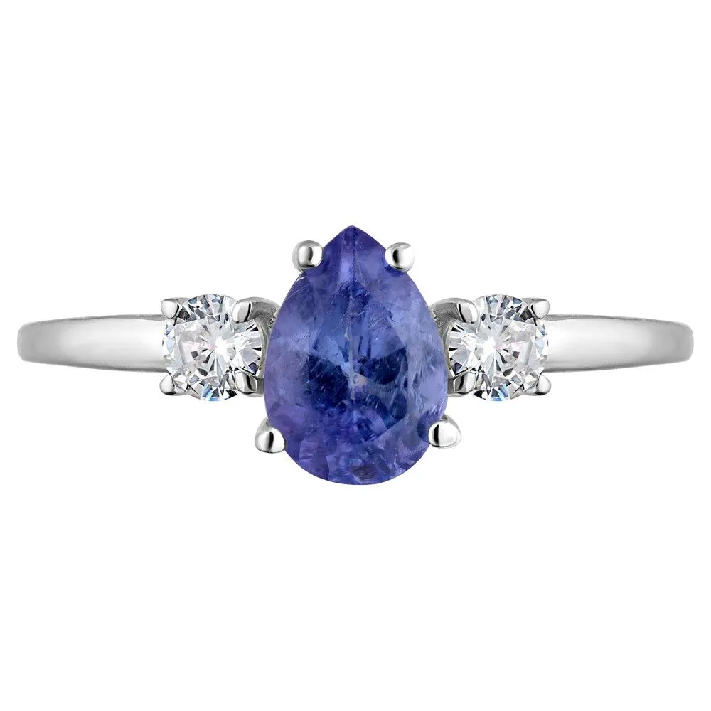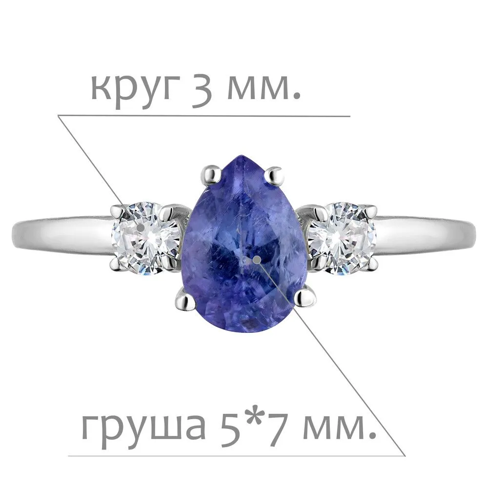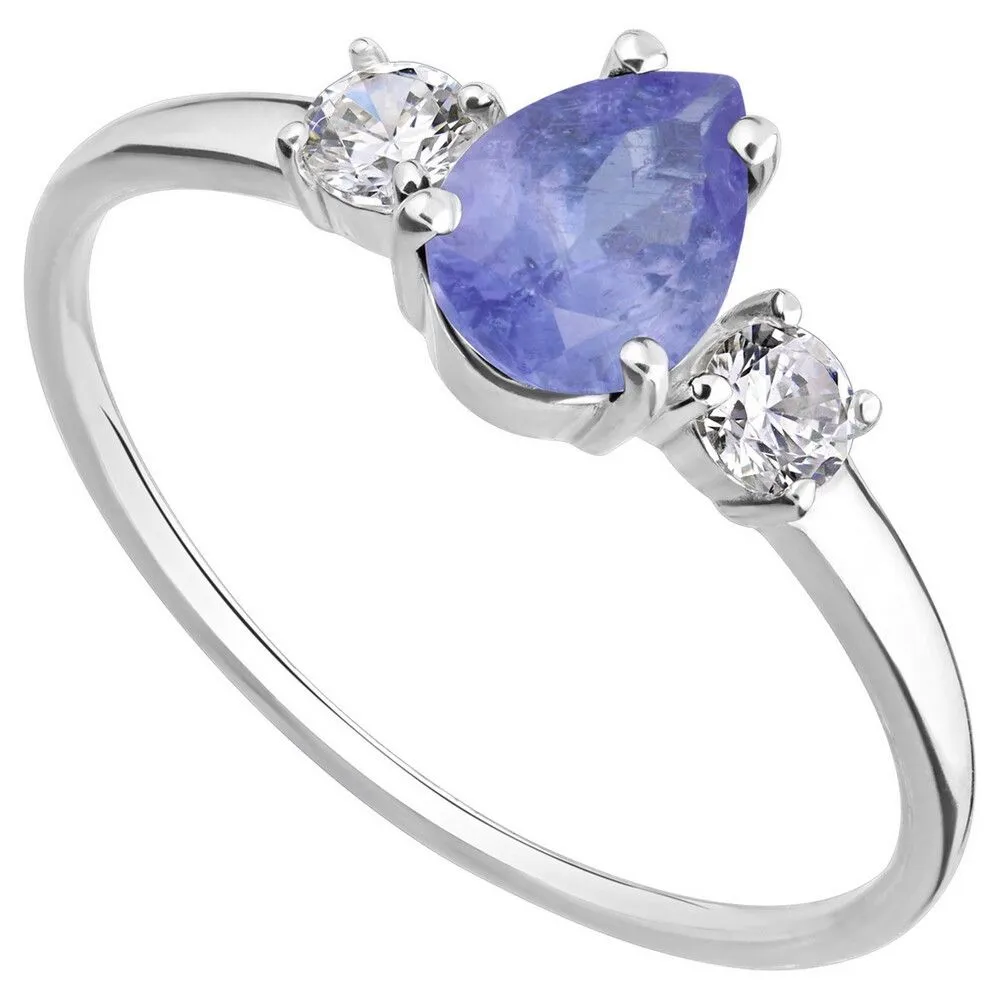 Серебряное кольцо с натуральным танзанитом - коллекция Алсу (малая) / Белый Родий. Средний вес украшения с камнями 1.35 гр. Месторождение: Танзанит (провинция Аруша, Танзания). Ювелирные вставки: Танзанит (Натуральный) груша 5*7 мм., средний вес: 0.56 карат. Белый Нанокристалл круг 3 мм. Все изделия собственного производства и имеют гарантию 12 месяцев, к каждому изделию прилагается паспорт. Арт. 8811WR