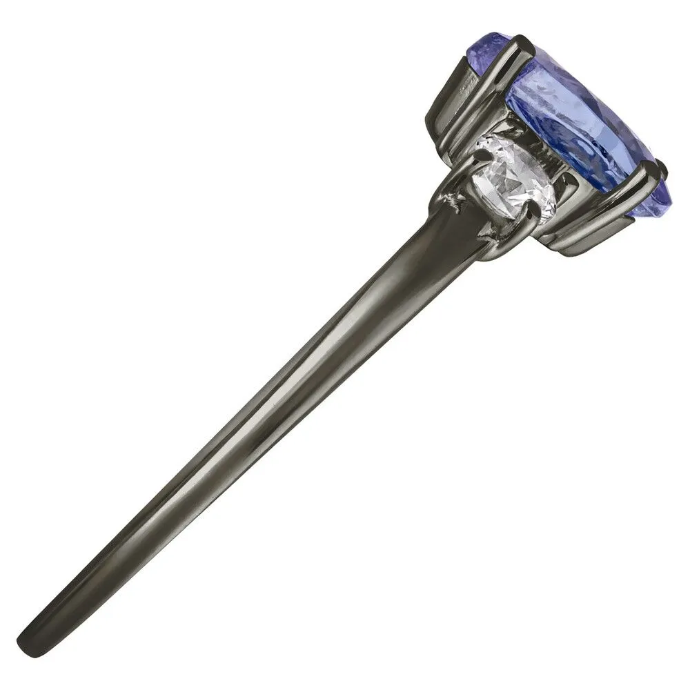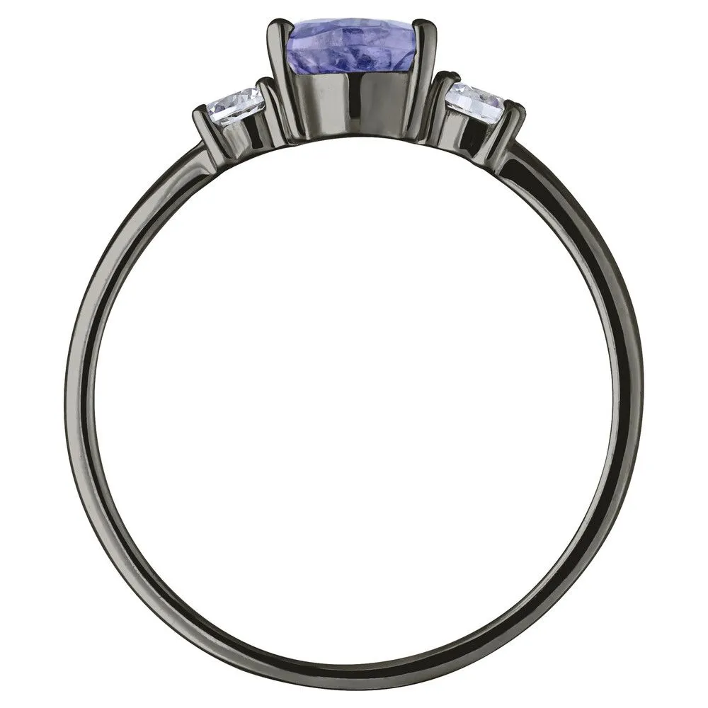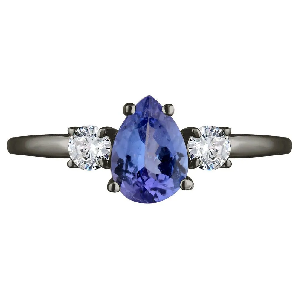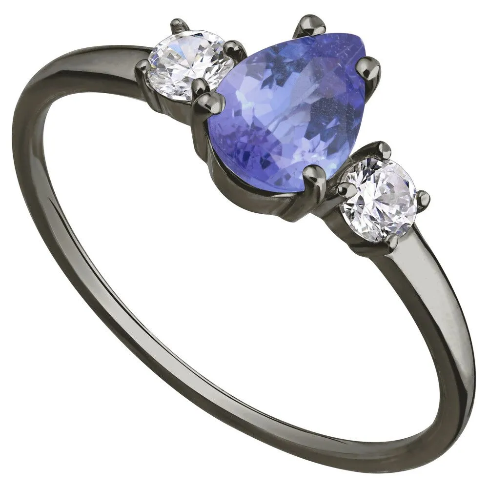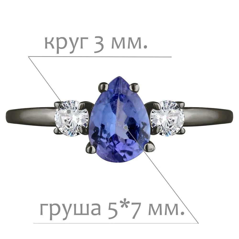 Серебряное кольцо с натуральным танзанитом (2 кл.) - коллекция Алсу (малая) / Черный Родий. Средний вес украшения с камнями 1.11 гр. Месторождение: Танзанит (провинция Аруша, Танзания). Ювелирные вставки: Танзанит (Натуральный) груша 5*7 мм., средний вес: 0.56 карат. Белый Нанокристалл круг 3 мм. Все изделия собственного производства и имеют гарантию 12 месяцев, к каждому изделию прилагается паспорт. Арт. 8916BR