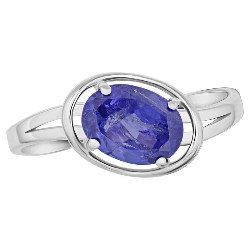 Серебряное кольцо с натуральным танзанитом - коллекция Фрейя / покрытие Чистое Серебро