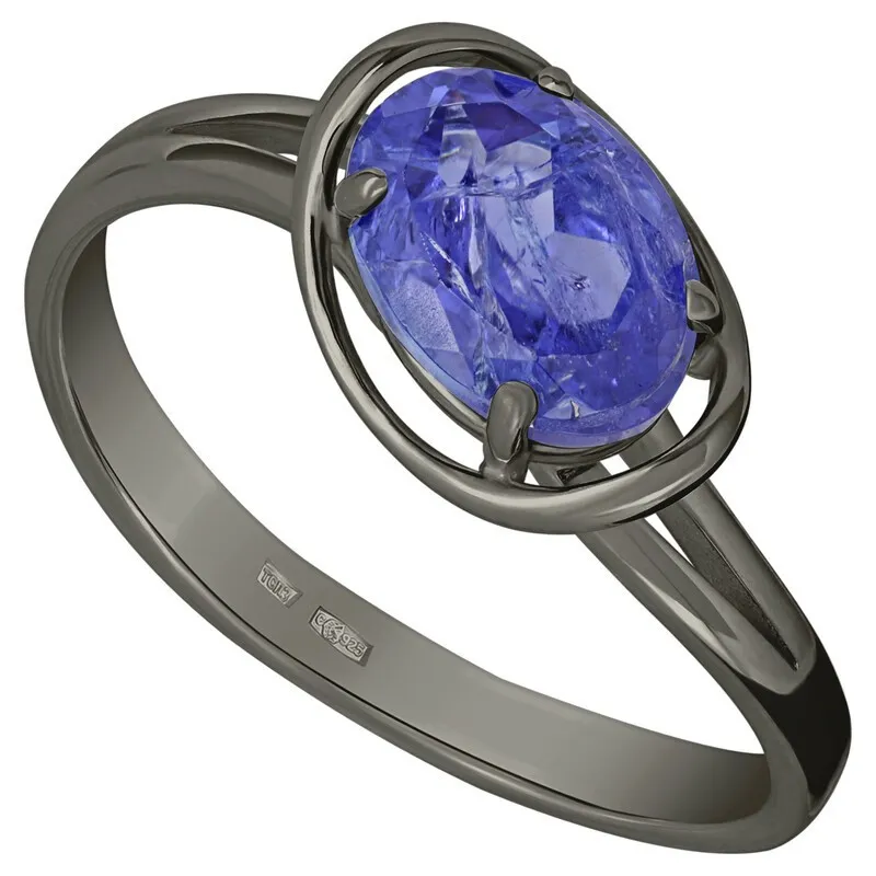 Серебряное кольцо с натуральным танзанитом - коллекция Фрейя, покрытие Черный Родий. Средний вес украшения с камнем составляет 2.21 гр. Месторождение(я): Танзанит (провинция Аруша, Танзания).