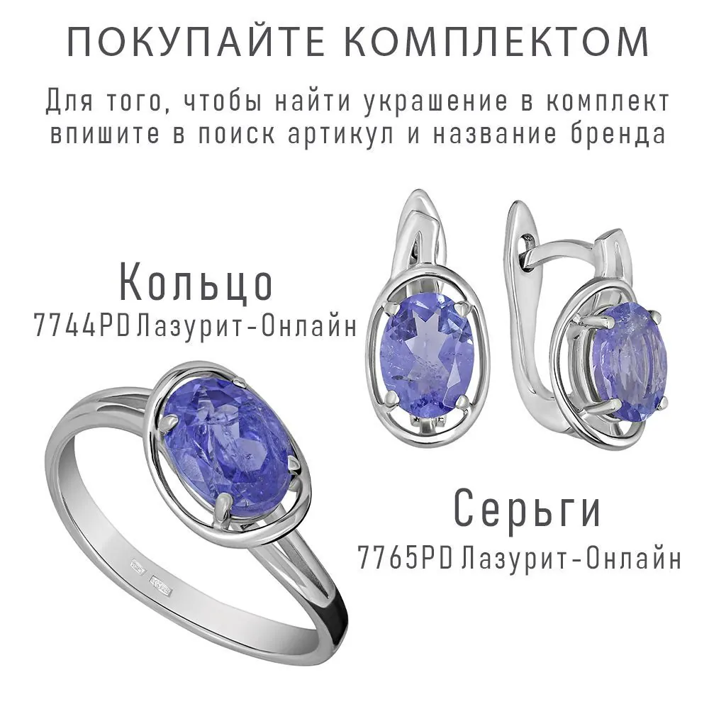 Серебряное кольцо с натуральным танзанитом - коллекция Фрейя. Средний вес изделия с камнем составляет 2.21 гр. Месторождение(я): Танзанит (провинция Аруша, Танзания). Танзанит (Натуральный) овал 6*8 мм., средний вес: 1.52 карат. Все изделия собственного производства, гарантия 12 месяцев. Арт. 7744. Танзанит – интересный камень, который нашли совершенно случайно и некоторое время относили к сапфирам, пока наконец многочисленные исследования не подтвердили, что это иной минерал. Глубокий синий цвет способен восстанавливать зрение, успокаивать нервную систему. Минералу приписывалась способность приносить богатство и успех в карьере.