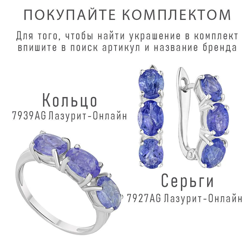 Серебряное кольцо с натуральным танзанитом - коллекция Муза / покрытие Чистое Серебро