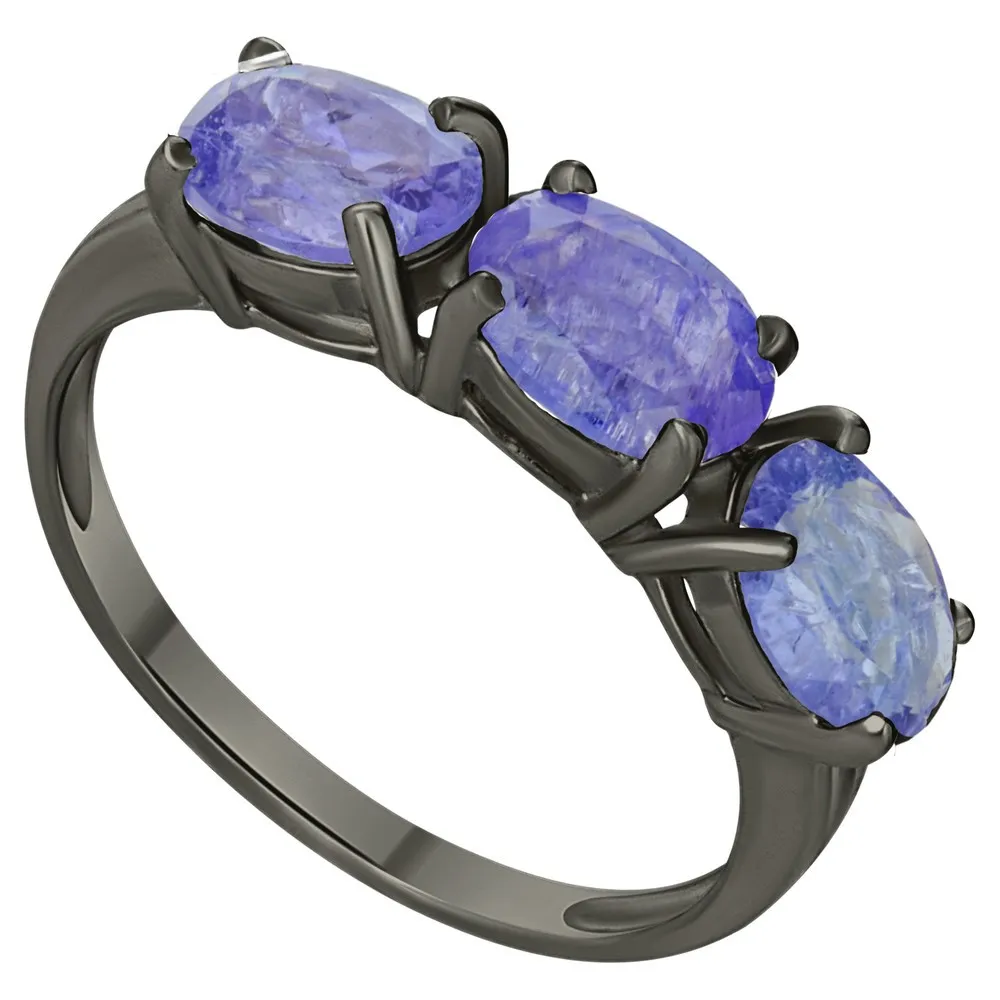 Серебряное кольцо с натуральным танзанитом - коллекция Муза, покрытие Черный Родий.