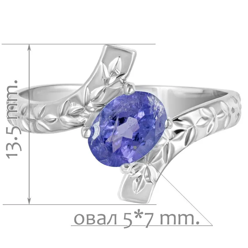 Серебряное кольцо с натуральным танзанитом - коллекция Тея. Средний вес изделия с камнями 2.35 гр. Месторождение: Танзанит (провинция Аруша, Танзания) Танзанит (Натуральный) овал 5*7 мм., средний вес: 0.89 карат. Все изделия собственного производства, гарантия 12 месяцев. Арт. 8053