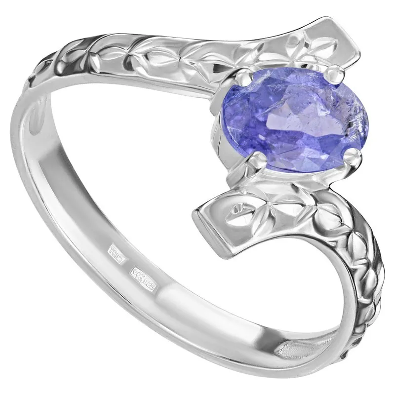 Серебряное кольцо с натуральным танзанитом - коллекция Тея / покрытие Палладий