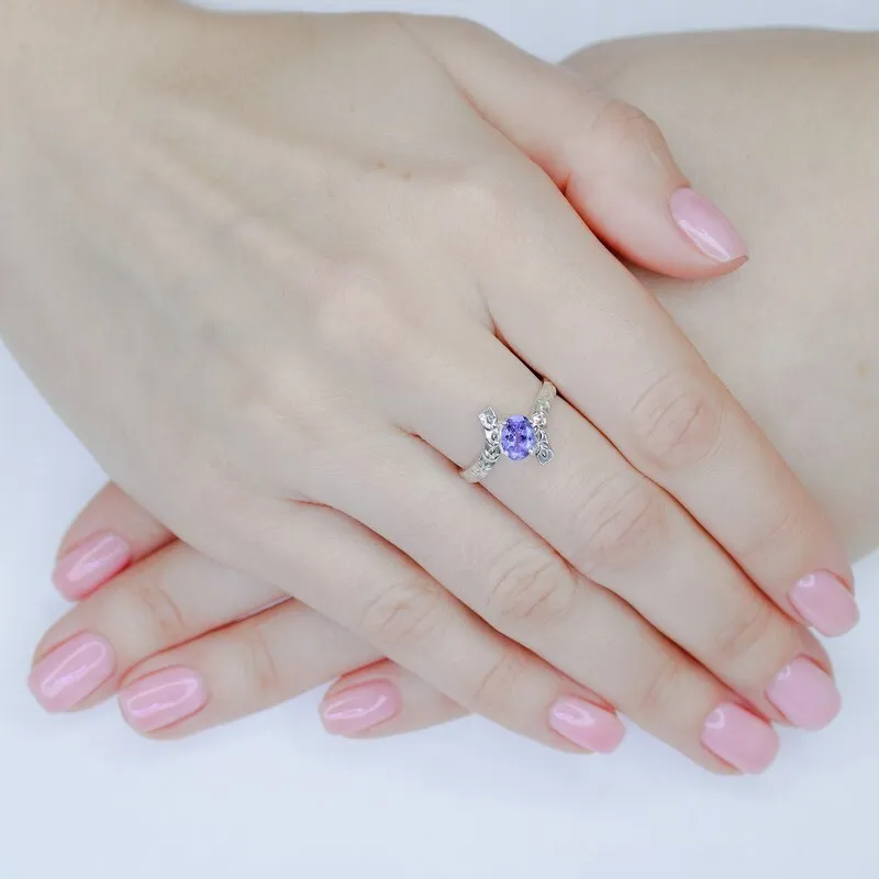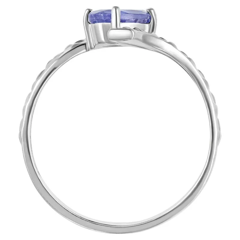 Серебряное кольцо с натуральным танзанитом - коллекция Тея / покрытие Белый Родий
