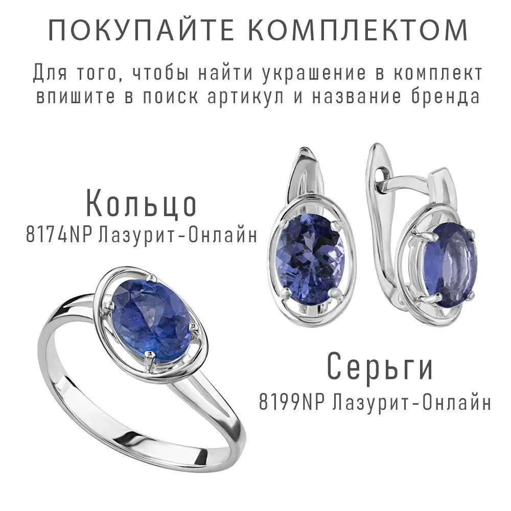 Серебряное кольцо с натуральным танзанитом (2 класс) - коллекция Фрейя / Без покрытия