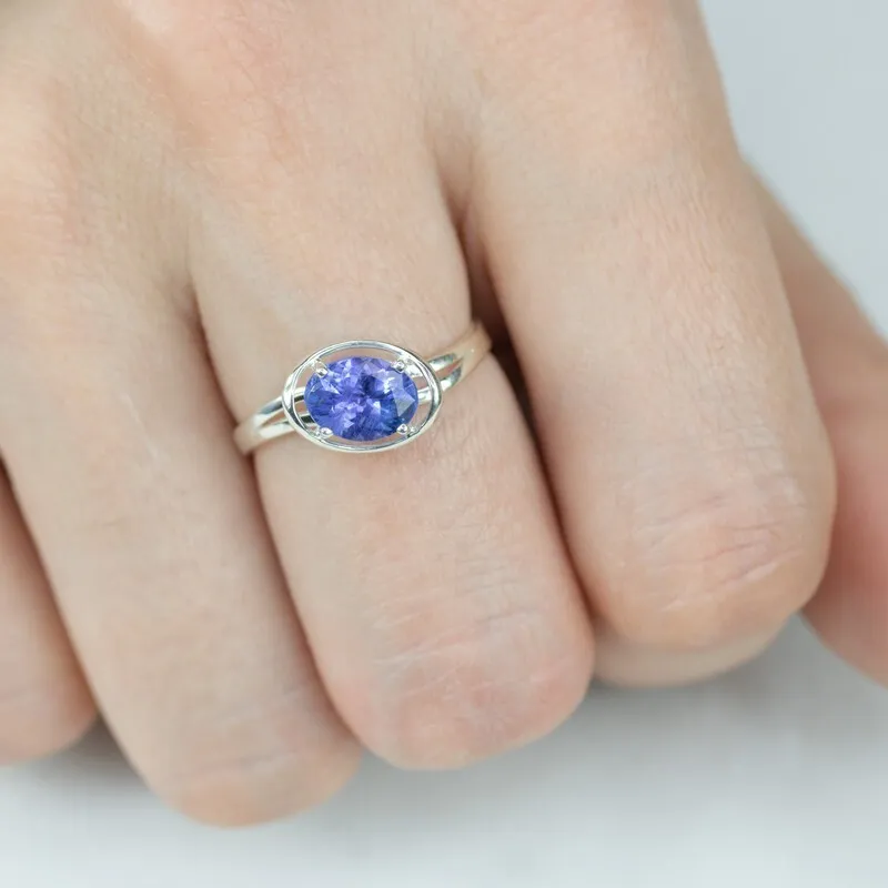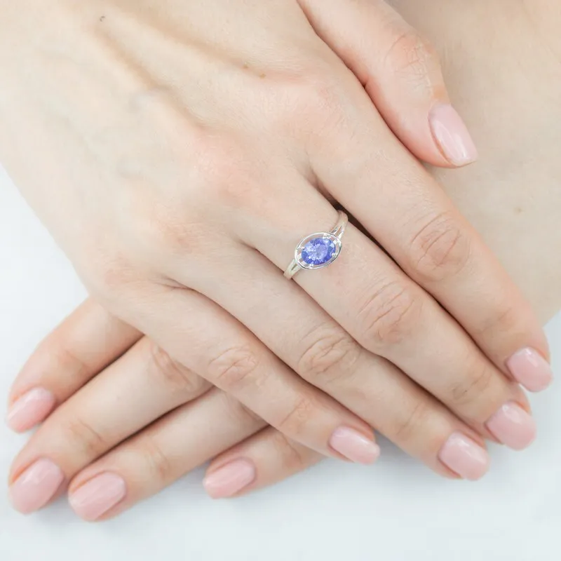 Серебряное кольцо с натуральным танзанитом - коллекция Фрейя. Средний вес изделия с камнями 2.41 гр. Месторождение: Танзанит (провинция Аруша, Танзания). Танзанит (Натуральный) овал 6*8 мм., средний вес: 1.22 карат. Все изделия собственного производства, гарантия 12 месяцев. Арт. 8174